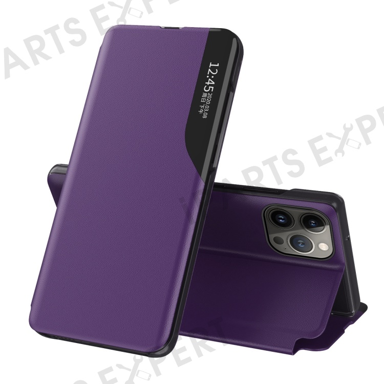 For iPhone 14 Pro Max 6.7 inch Clear View Window Folio Flip Leather Phone Case Stand Anti-Scratch Phone Cover - Purple
