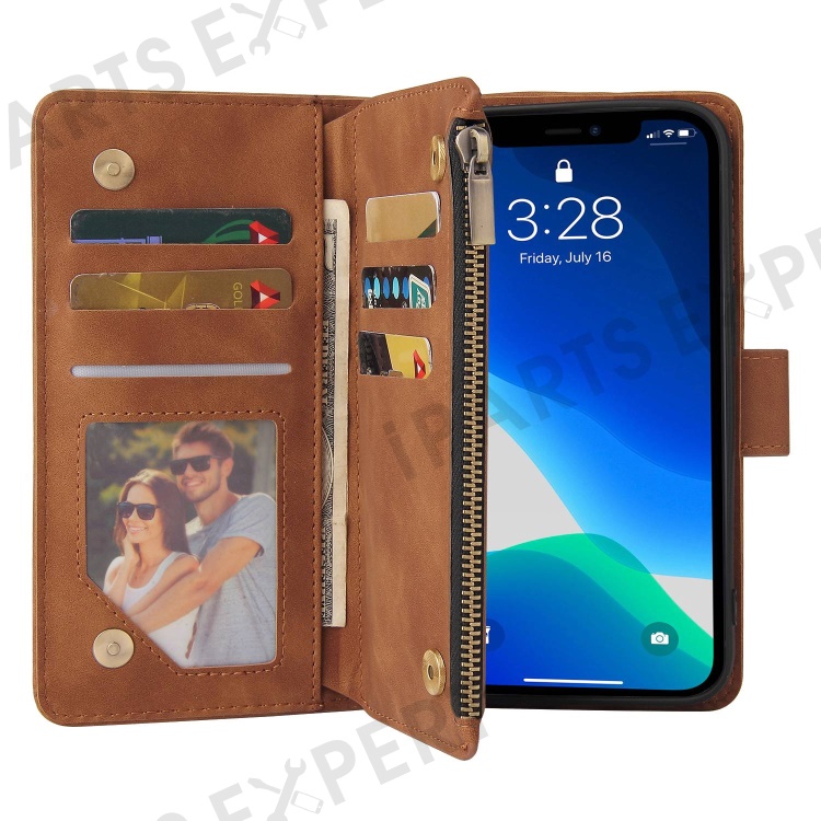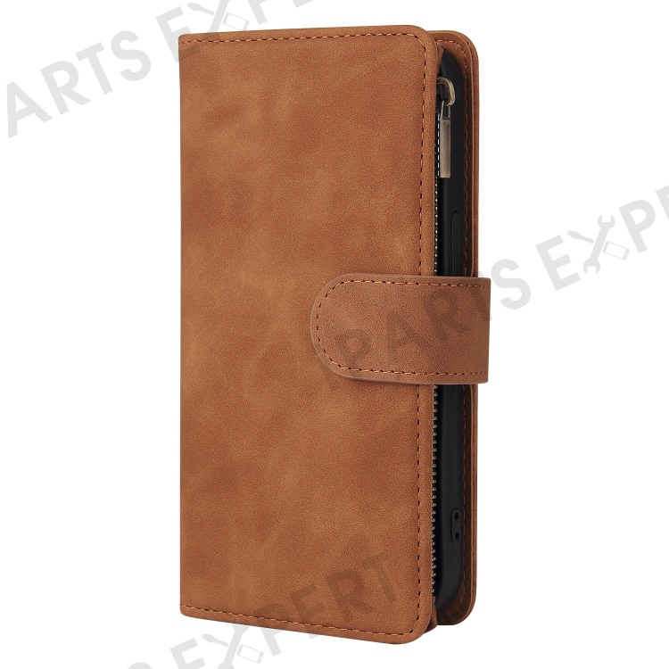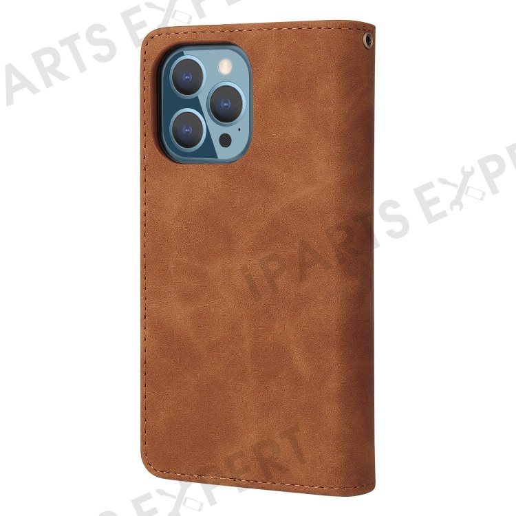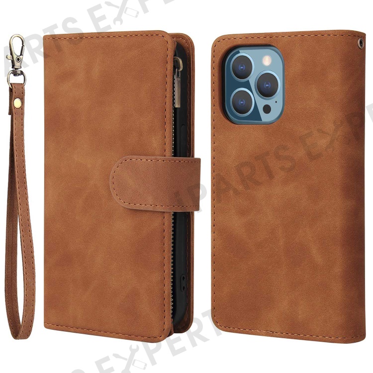 For iPhone 14 Pro Max 6.7 inch PU Leather Anti-drop Phone Cover Card Holder Wallet Stand Protective Case with Zipper Pocket - Brown