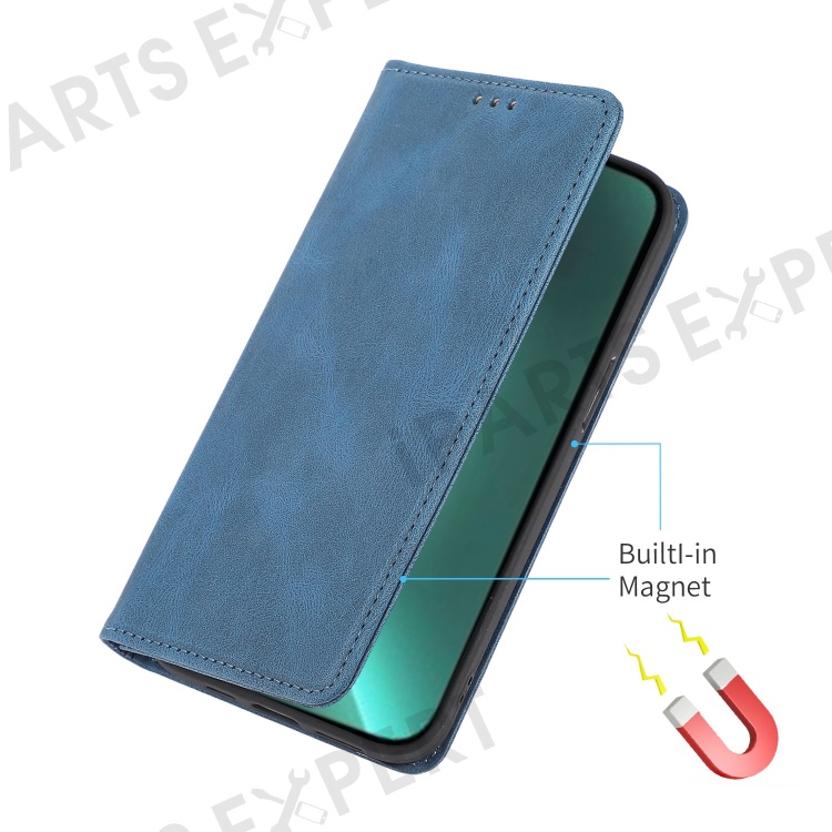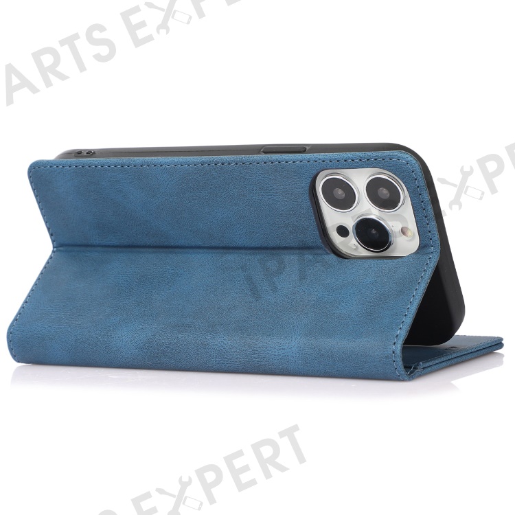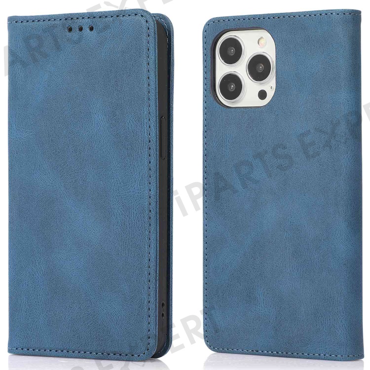 For iPhone 14 Pro Max 6.7 inch PU Leather Phone Drop-proof Case Magnetic Adsorption Flip Stand Wallet Shell - Blue