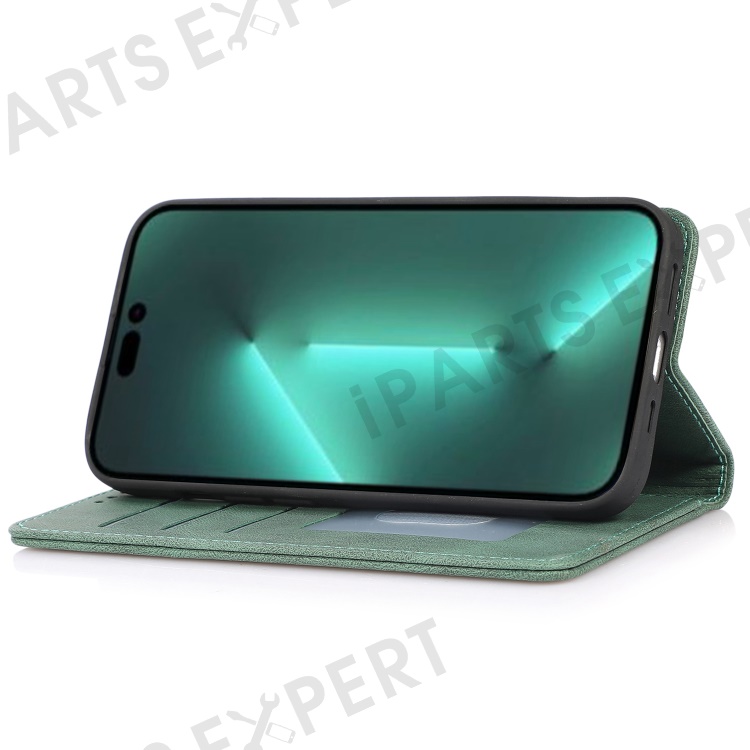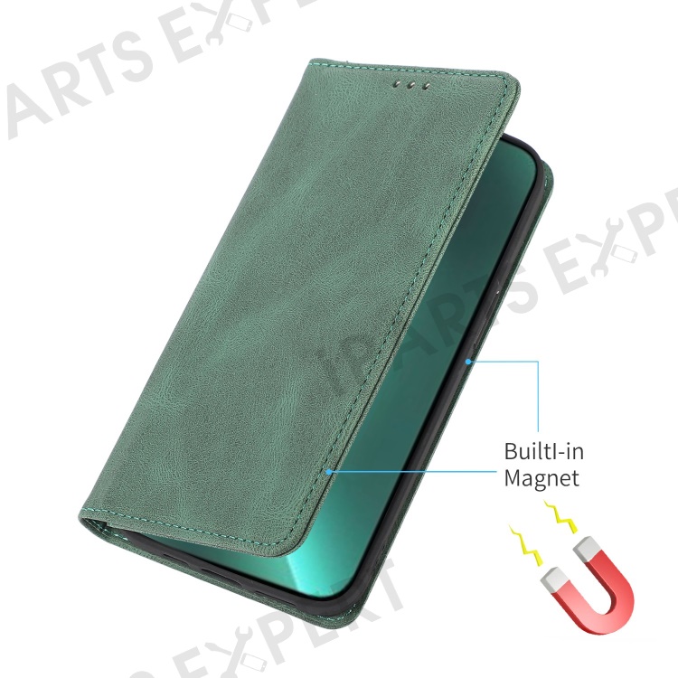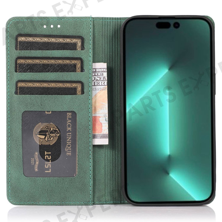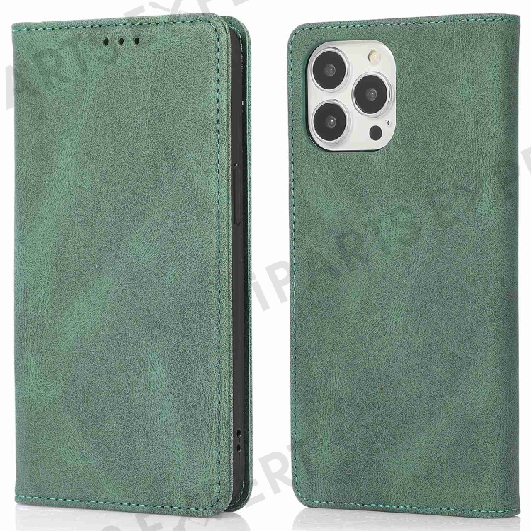 For iPhone 14 Pro Max 6.7 inch PU Leather Phone Drop-proof Case Magnetic Adsorption Flip Stand Wallet Shell - Green