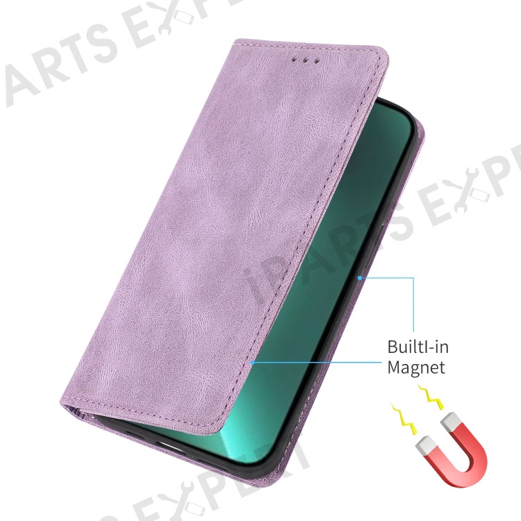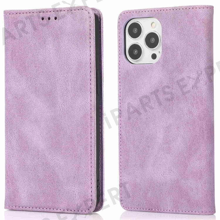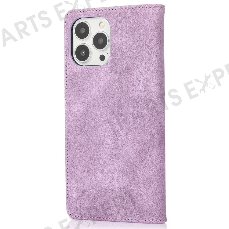 For iPhone 14 Pro Max 6.7 inch PU Leather Phone Drop-proof Case Magnetic Adsorption Flip Stand Wallet Shell - Purple