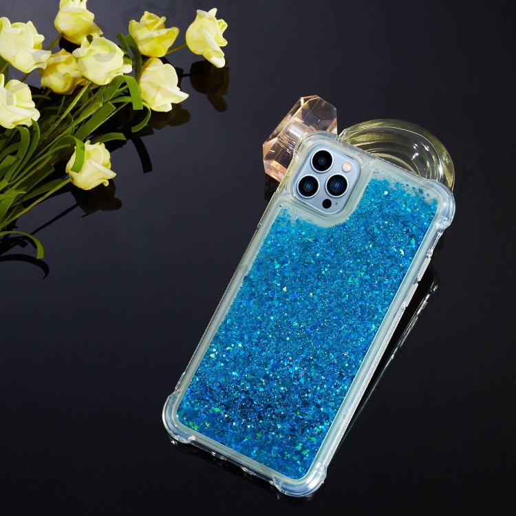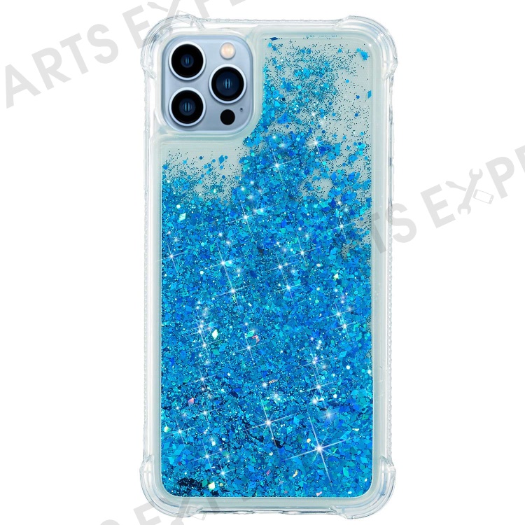 For iPhone 14 Pro Max 6.7 inch Quicksand Flowing Glitter Case Soft TPU Reinforced Corners Protective Back Cover - Blue