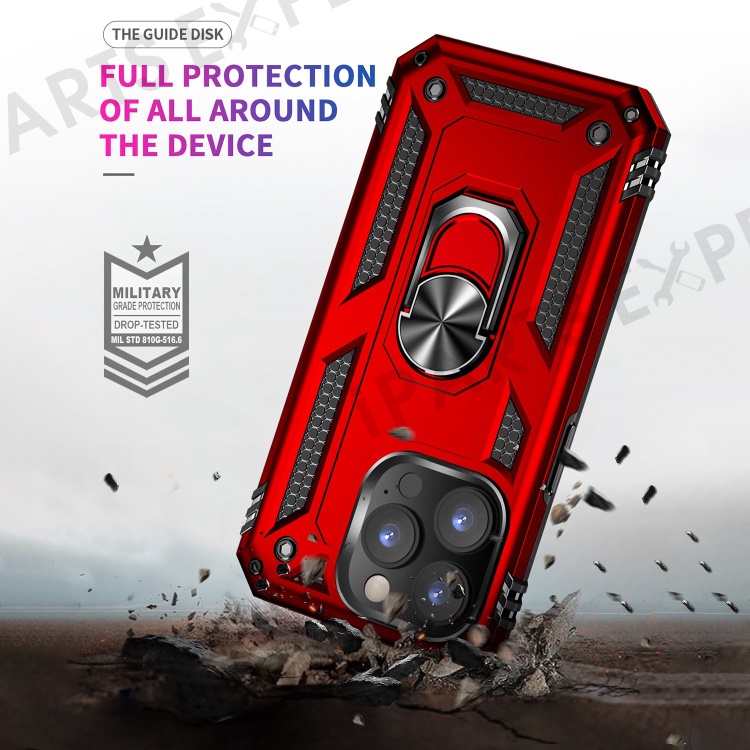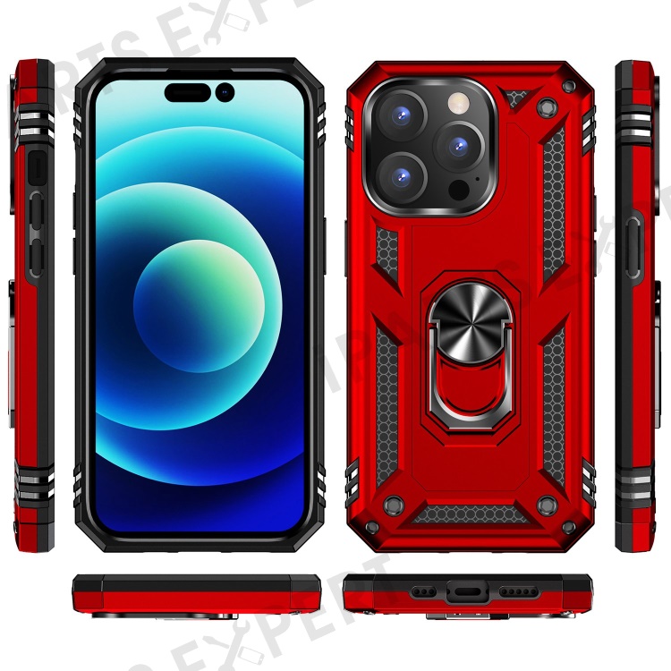 For iPhone 14 Pro Max 6.7 inch Rotary Kickstand Phone Case Soft TPU Hard PC Back Cover with Built-in Metal Sheet - Red