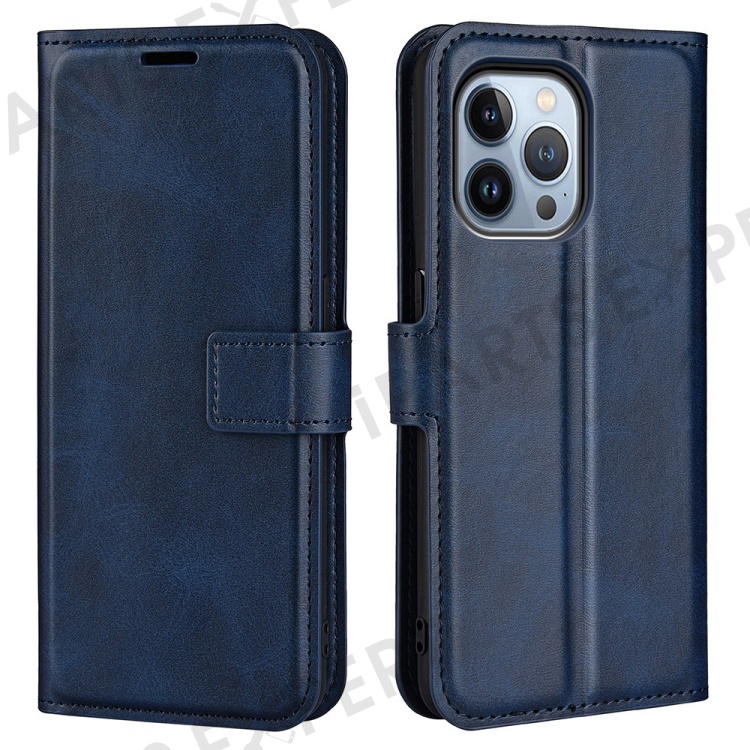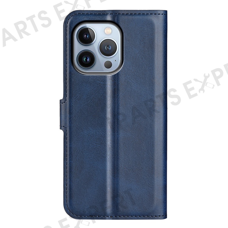 For iPhone 14 Pro Max 6.7 inch Textured PU Leather Anti-collision Phone Case Wallet Stand Cell Phone Cover - Blue