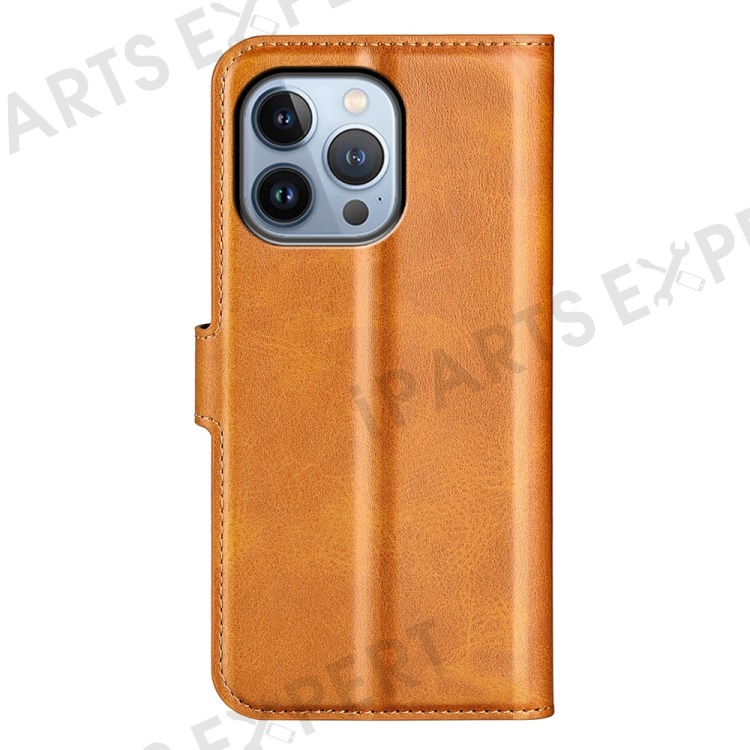 For iPhone 14 Pro Max 6.7 inch Textured PU Leather Anti-collision Phone Case Wallet Stand Cell Phone Cover - Yellow