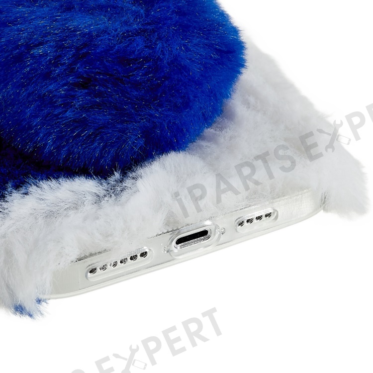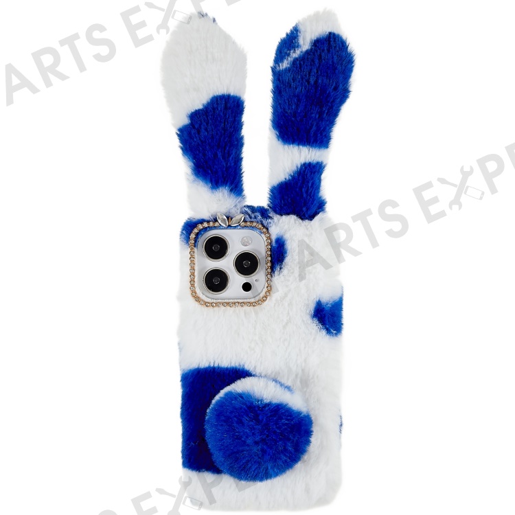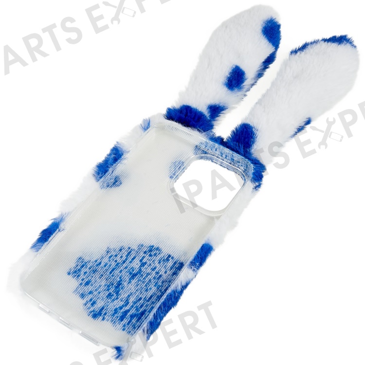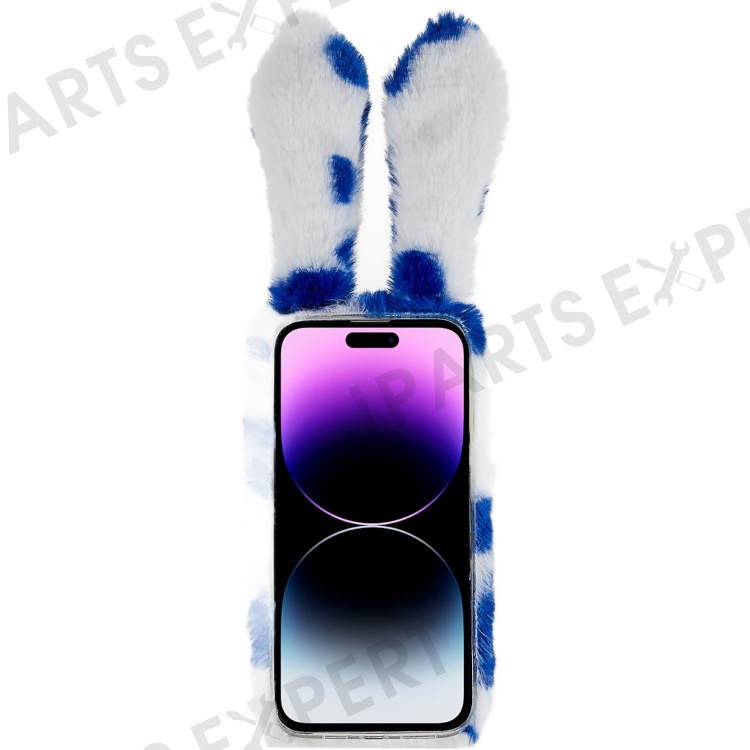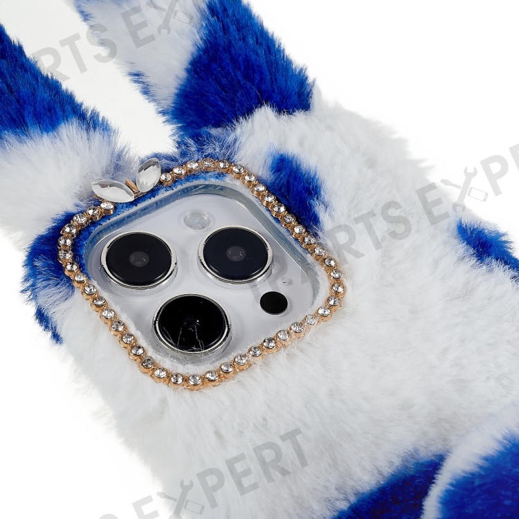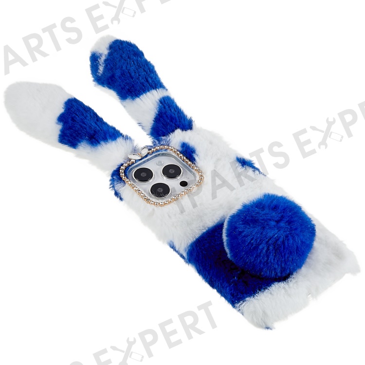 For iPhone 14 Pro Max Anti-fall Soft Handmade Fluffy Furry Bunny TPU Shell Cute Rabbit Protective Case - Blue