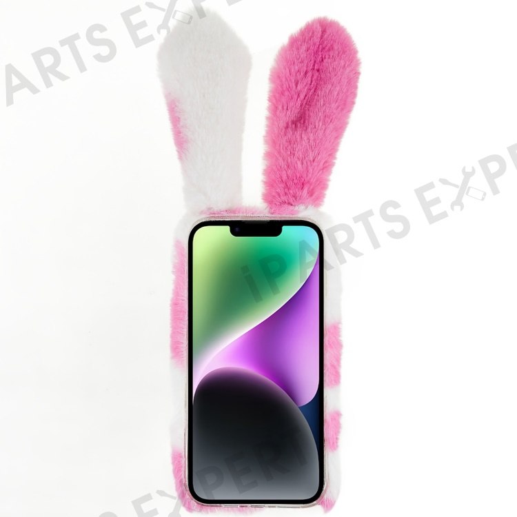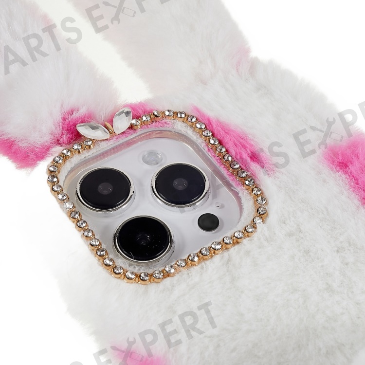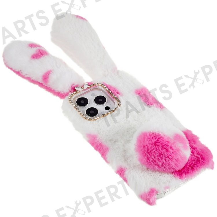 For iPhone 14 Pro Max Anti-fall Soft Handmade Fluffy Furry Bunny TPU Shell Cute Rabbit Protective Case - Rose