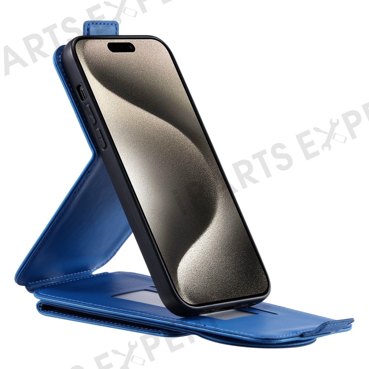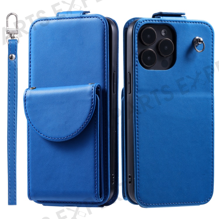 For iPhone 14 Pro Max Case Card Bag Vertical Flip PU Leather Anti-scratch Phone Cover - Blue