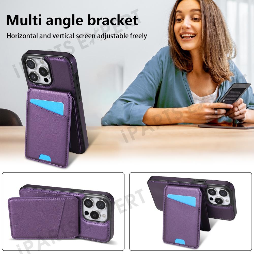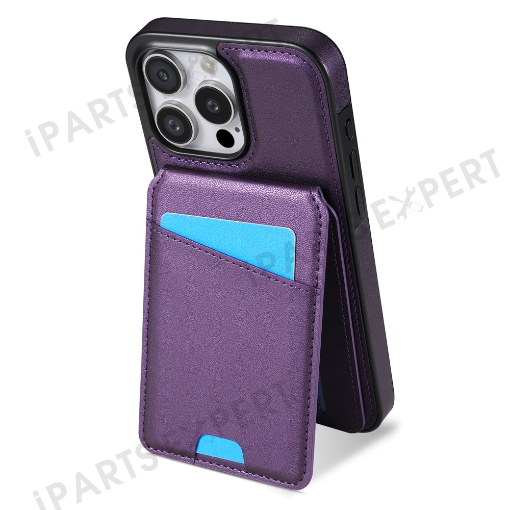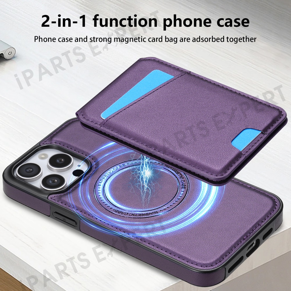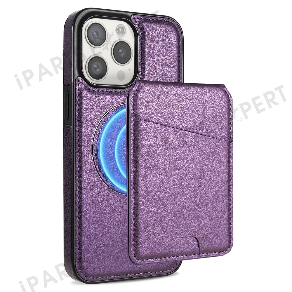 For iPhone 14 Pro Max Case Compatible with MagSafe Detachable Card Holder Kickstand Leather Phone Back Cover - Purple