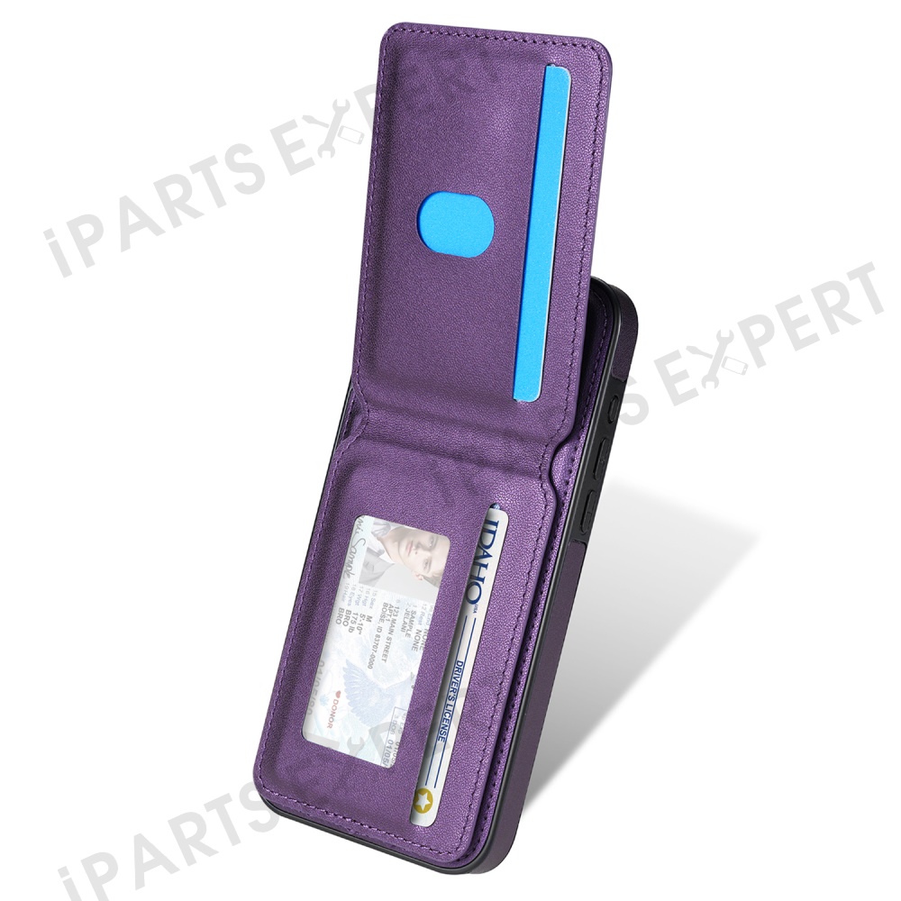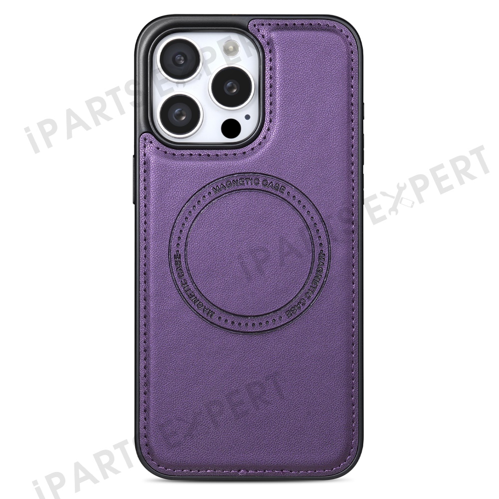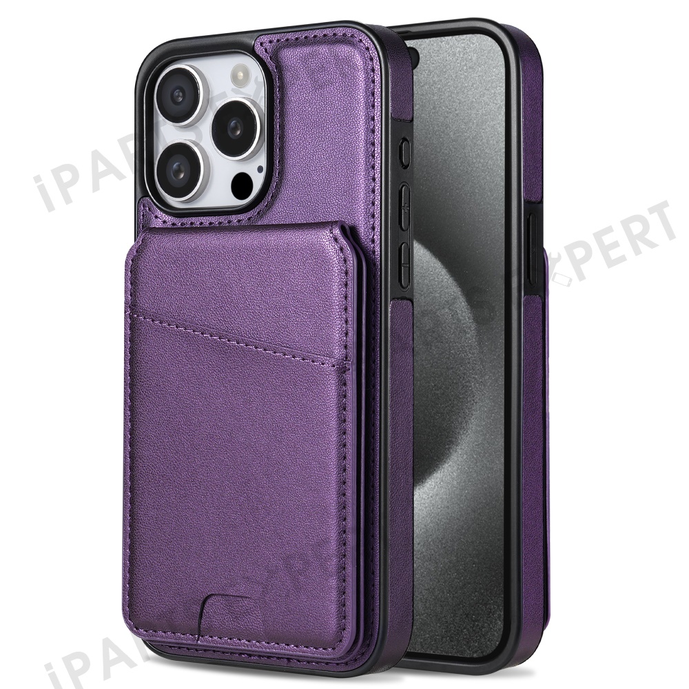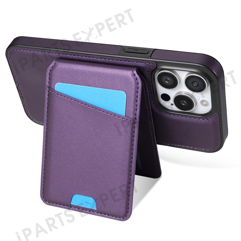 For iPhone 14 Pro Max Case Compatible with MagSafe Detachable Card Holder Kickstand Leather Phone Back Cover - Purple