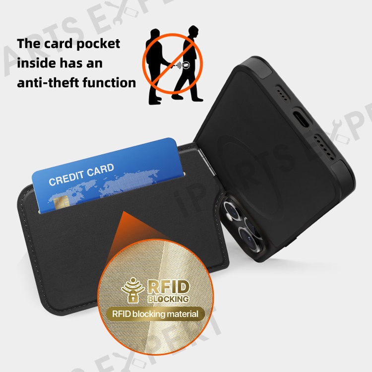 For iPhone 14 Pro Max Case Compatible with MagSafe RFID Blocking Card Slot Leather Back Cover - Black
