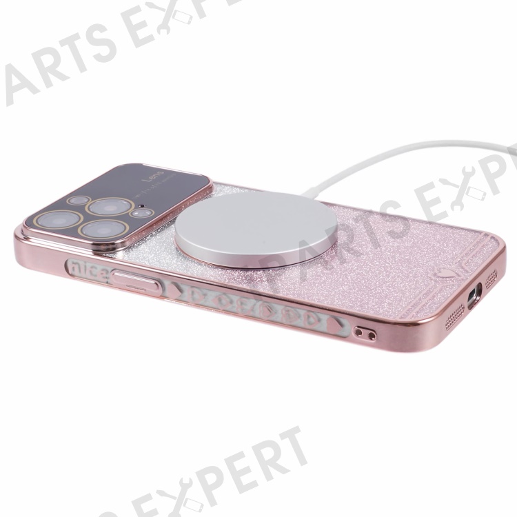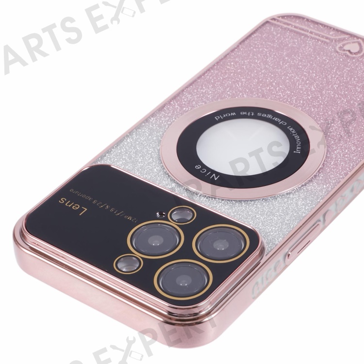 For iPhone 14 Pro Max Case Compatible with MagSafe Electroplated Edge TPU Phone Cover - Pink