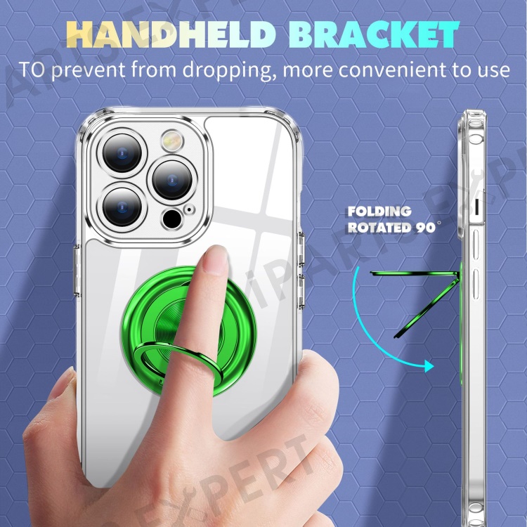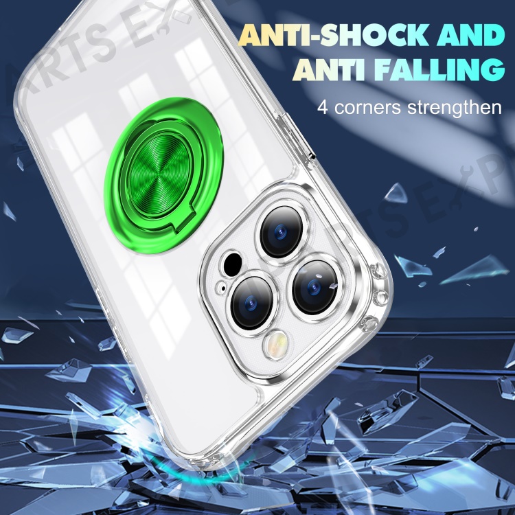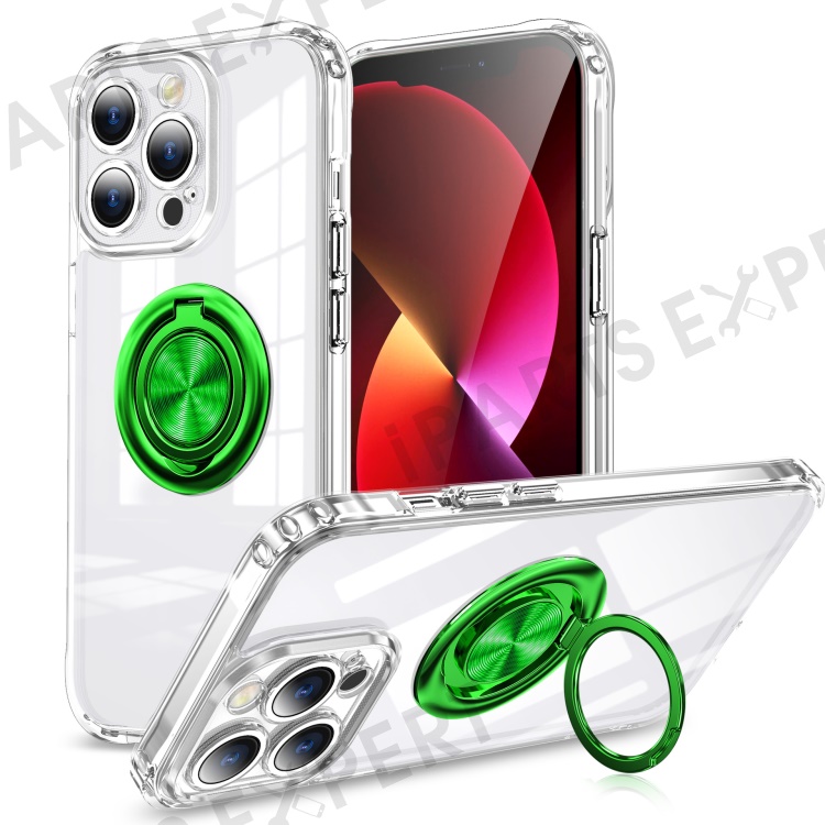 For iPhone 14 Pro Max Case Crystal Clear TPU PC Slim Case Shockproof Phone Cover with Kickstand - Green