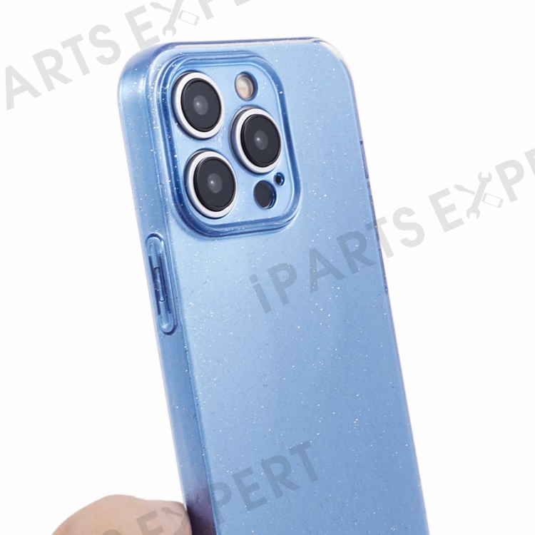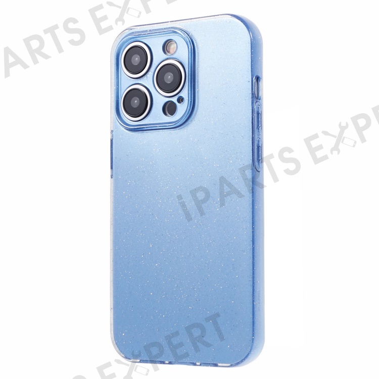 For iPhone 14 Pro Max Case Jelly TPU Glittery Anti-scratch Phone Back Cover - Blue