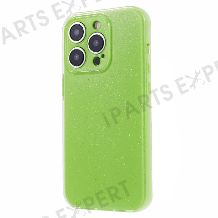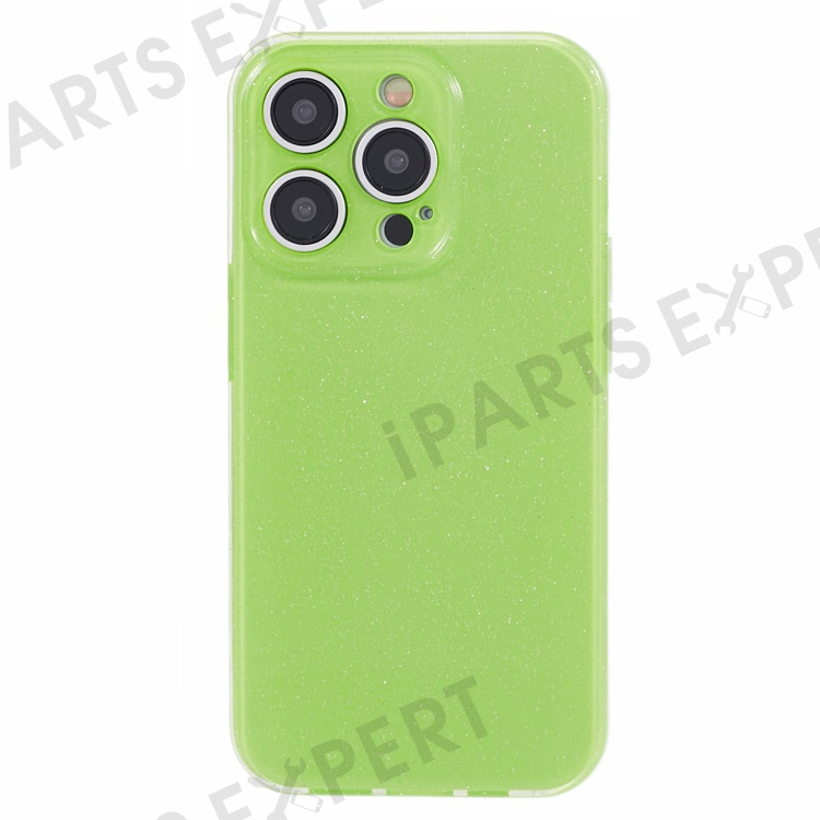 For iPhone 14 Pro Max Case Jelly TPU Glittery Anti-scratch Phone Back Cover - Fluorescent Green