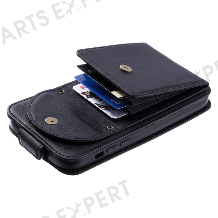 For iPhone 14 Pro Max Case Leather Card Holder Bag Wallet Phone Cover with Straps - Black