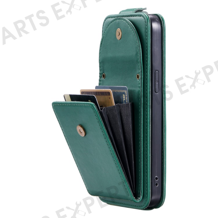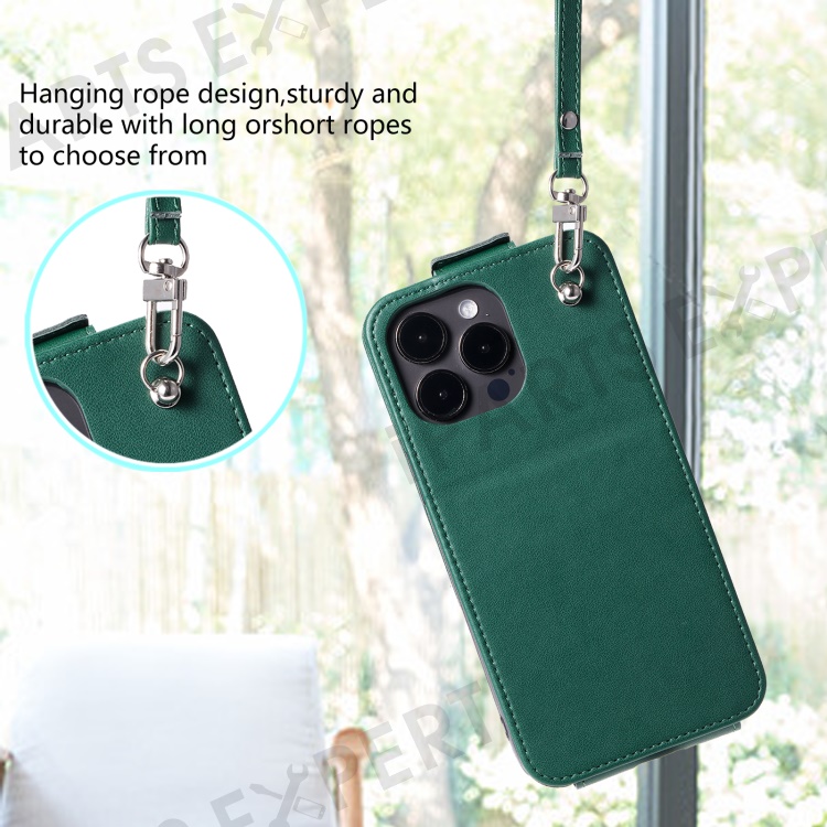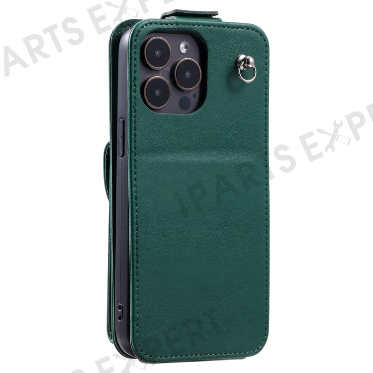 For iPhone 14 Pro Max Case Leather Card Holder Bag Wallet Phone Cover with Straps - Green