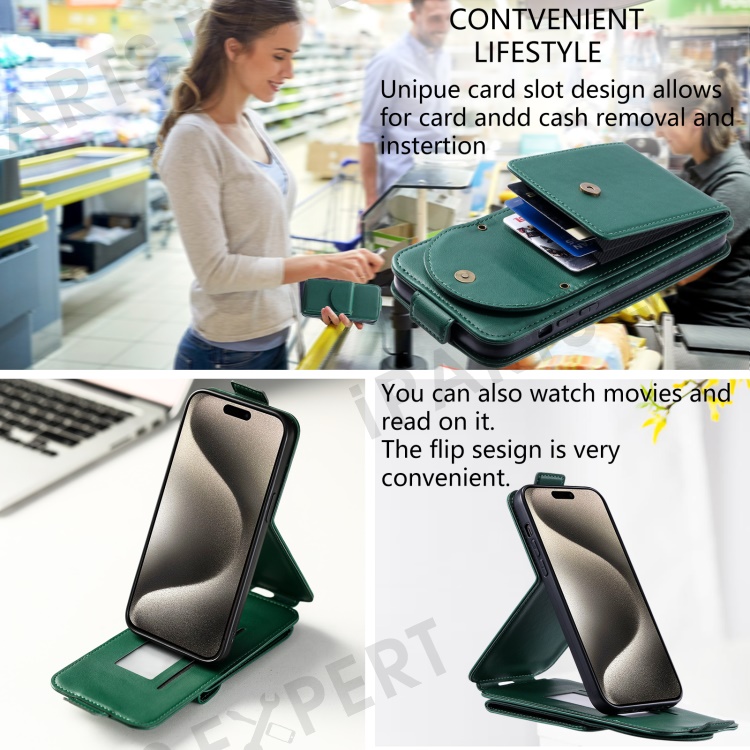 - Vertical-flip type phone case, opens down for easy operation with one hand