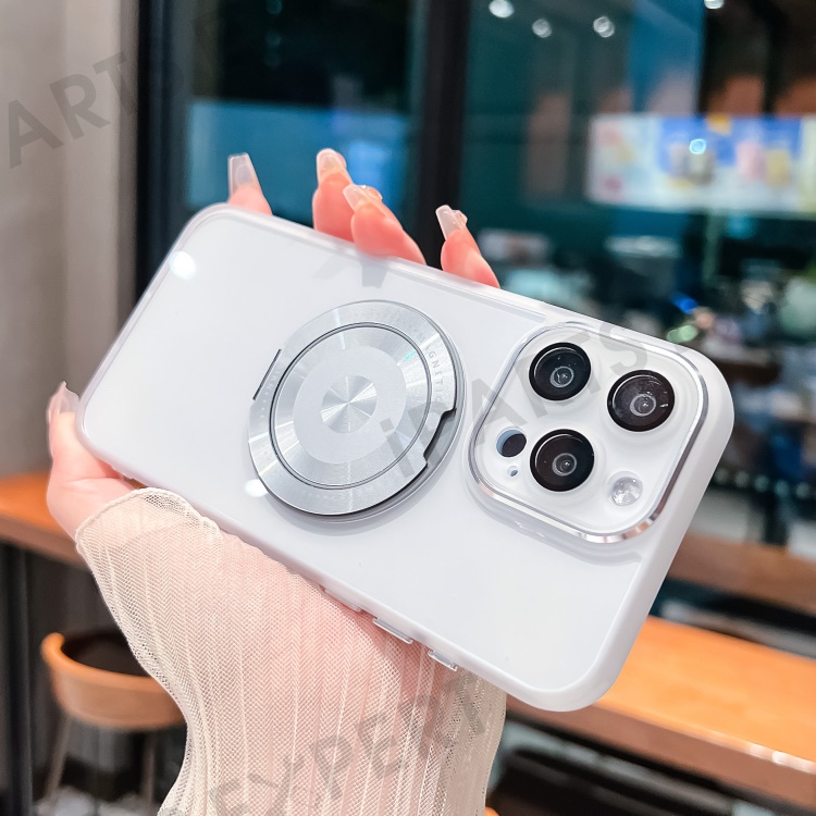 For iPhone 14 Pro Max Case Magnetic Rotating Kickstand PC+TPU Phone Cover with Lens Film - Matte White
