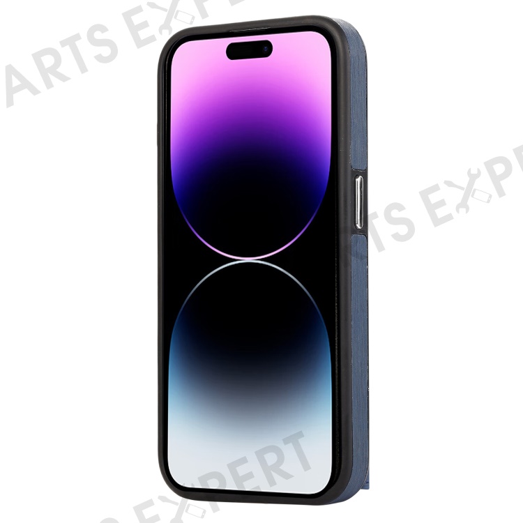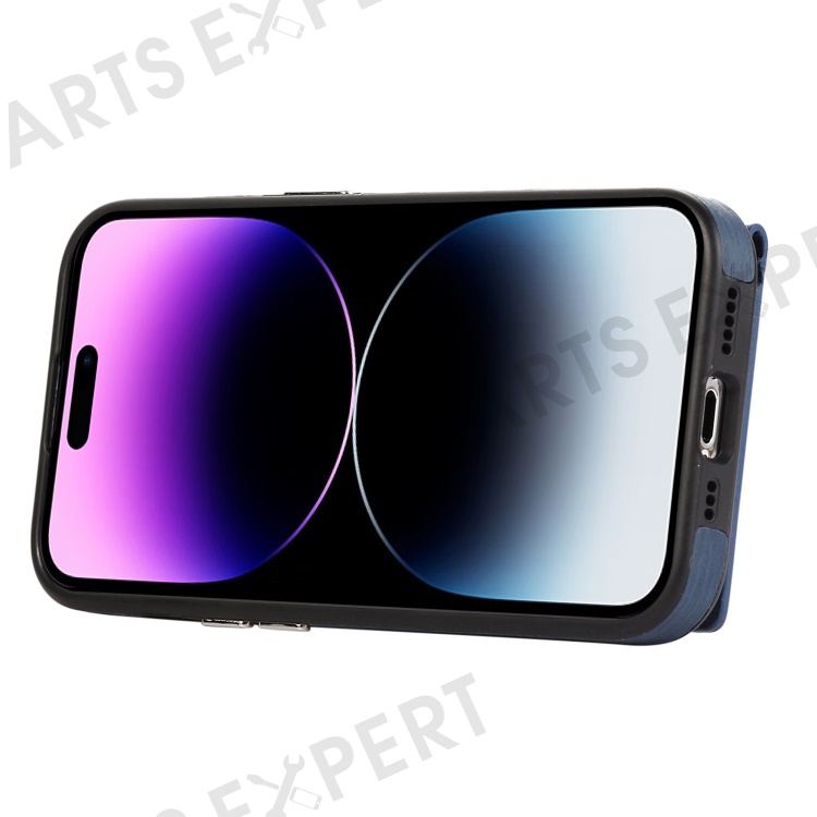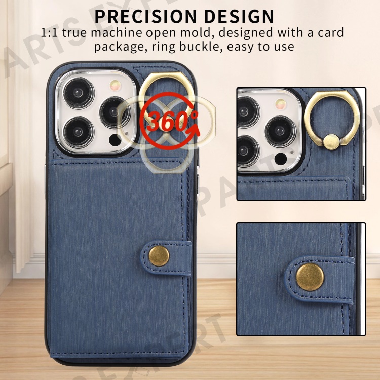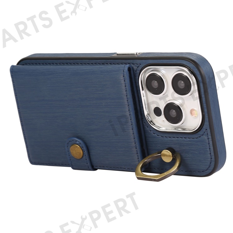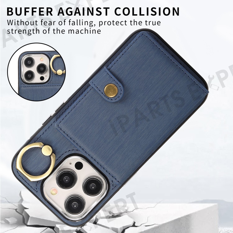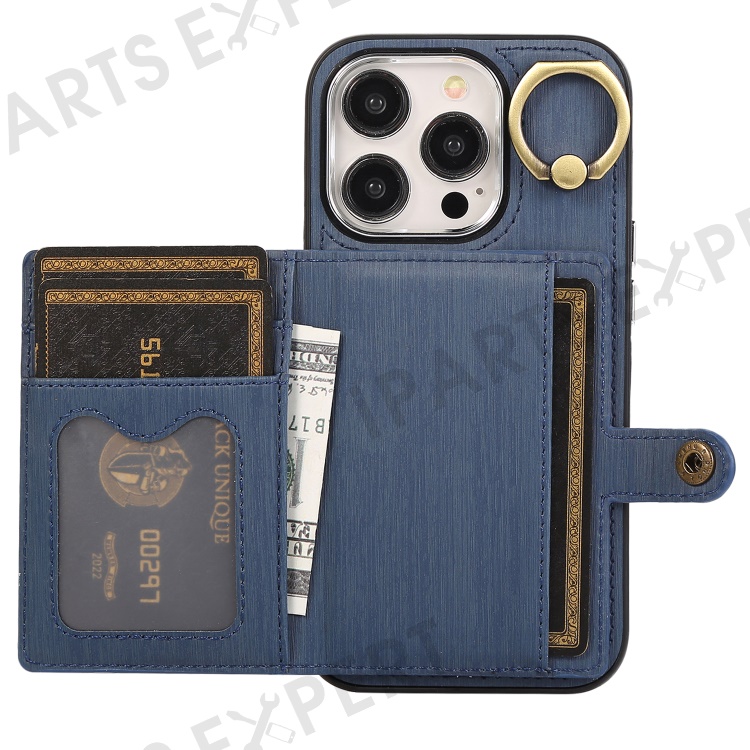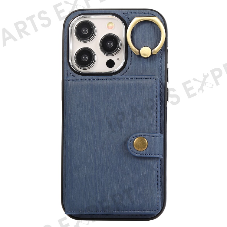 For iPhone 14 Pro Max Case Ring Kickstand Brushed PU Leather+TPU Anti-drop Phone Cover - Blue