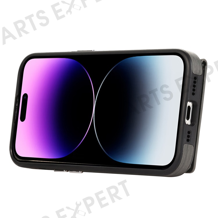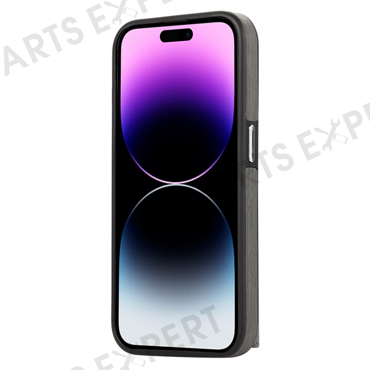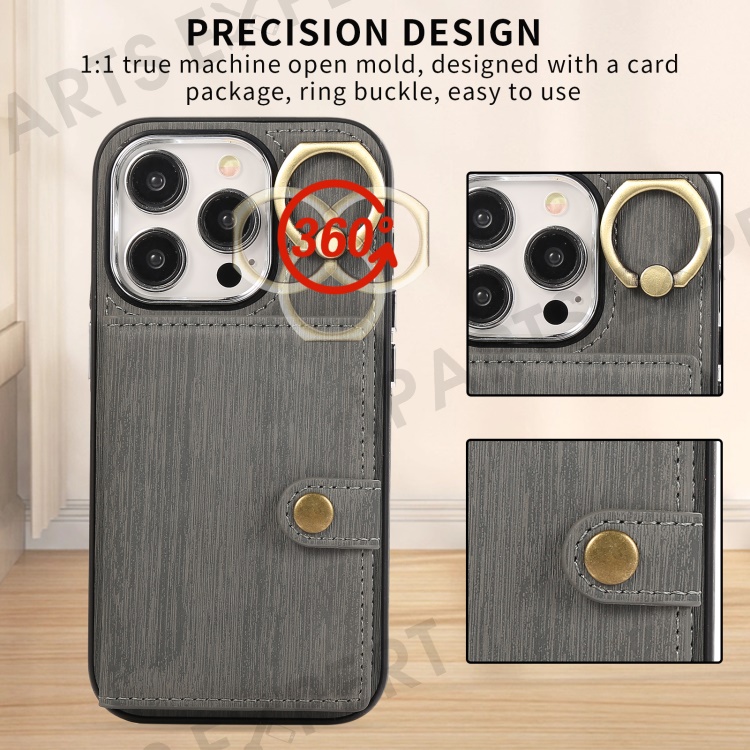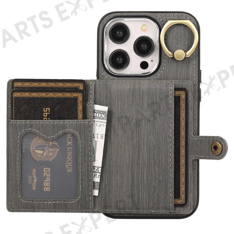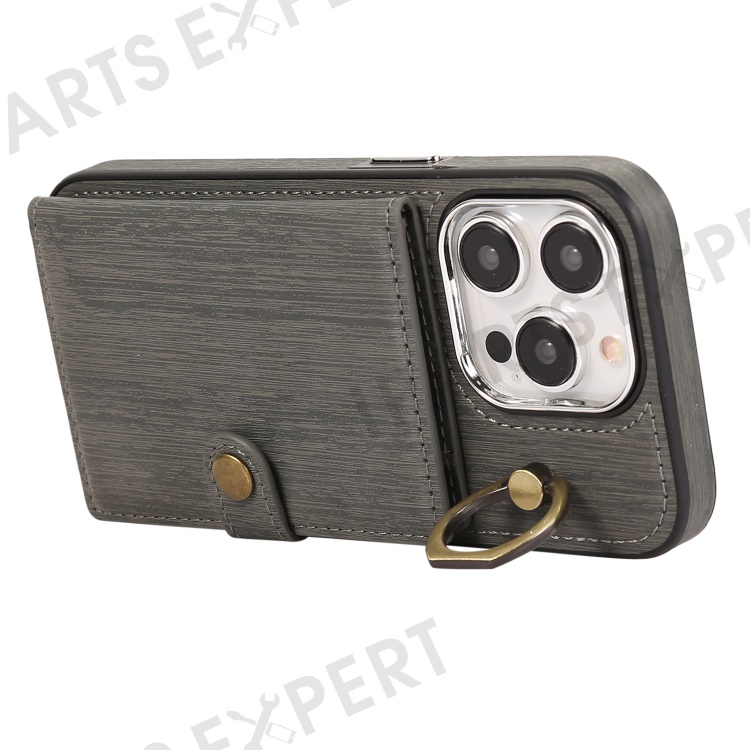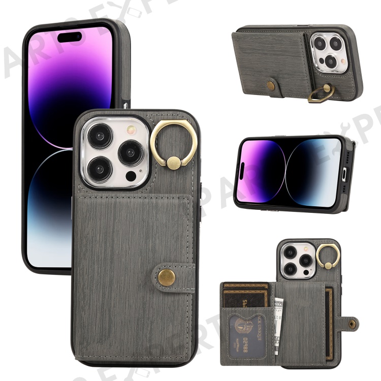 For iPhone 14 Pro Max Case Ring Kickstand Brushed PU Leather+TPU Anti-drop Phone Cover - Grey