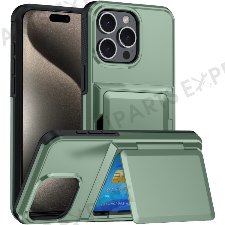 For iPhone 14 Pro Max Cases Card Slot TPU+PC Kickstand Phone Case - Light Green