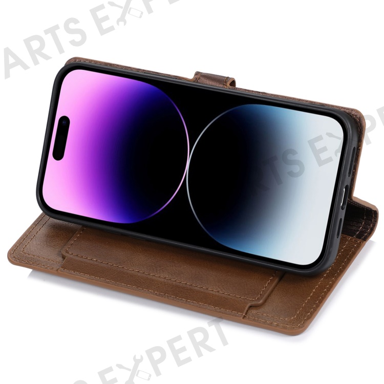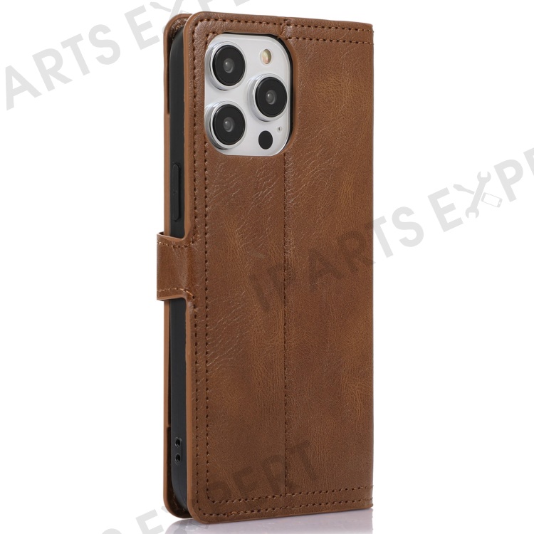 For iPhone 14 Pro Max Drop-proof Zipper Pocket Phone Flip Wallet Case with Magnetic Buckle Protective PU Leather Phone Cover Stand - Brown
