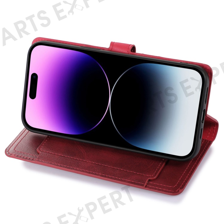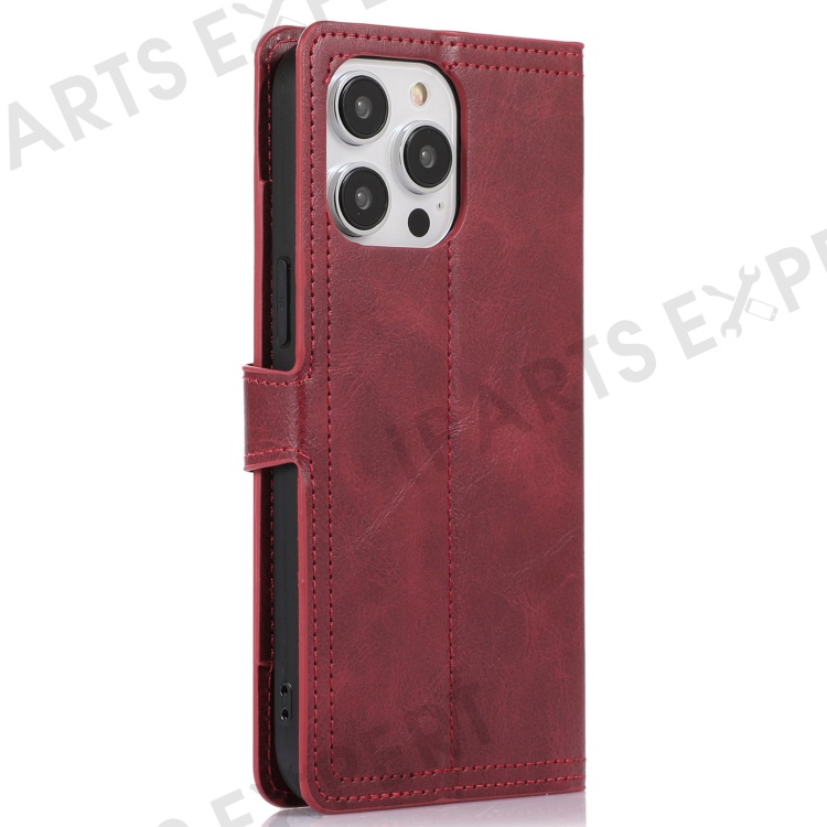 For iPhone 14 Pro Max Drop-proof Zipper Pocket Phone Flip Wallet Case with Magnetic Buckle Protective PU Leather Phone Cover Stand - Red