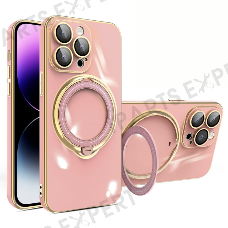 For iPhone 14 Pro Max Electroplating Kickstand Phone Case Soft TPU Cover with Lens Protector - Pink