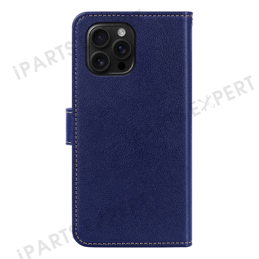 For iPhone 14 Pro Max Leather Case Litchi Texture Wallet RFID Blocking Phone Cover - Blue