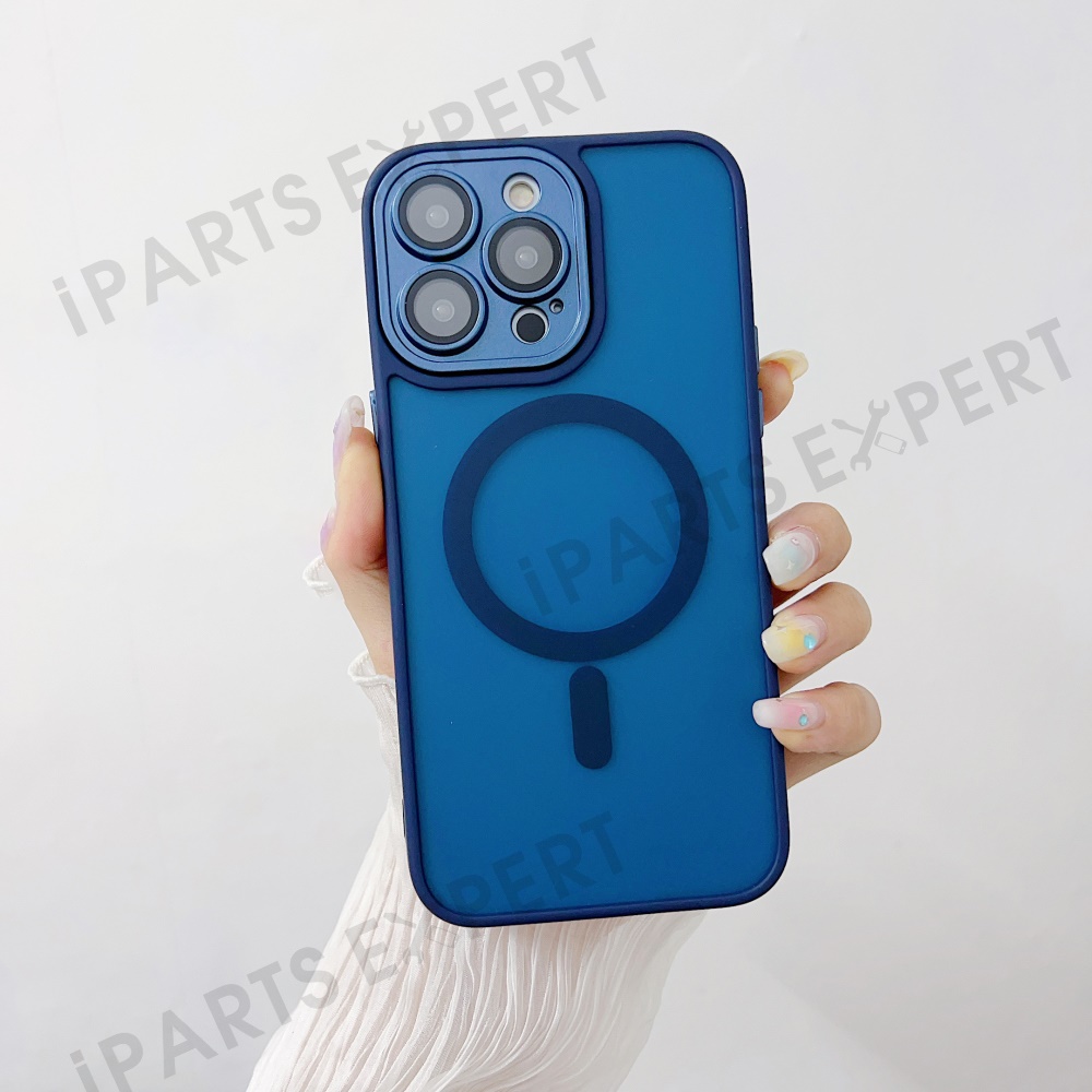 For iPhone 14 Pro Max Magnetic Case with Lens Film / Detachable Lens Frame Hybrid Phone Back Cover - Dark Blue