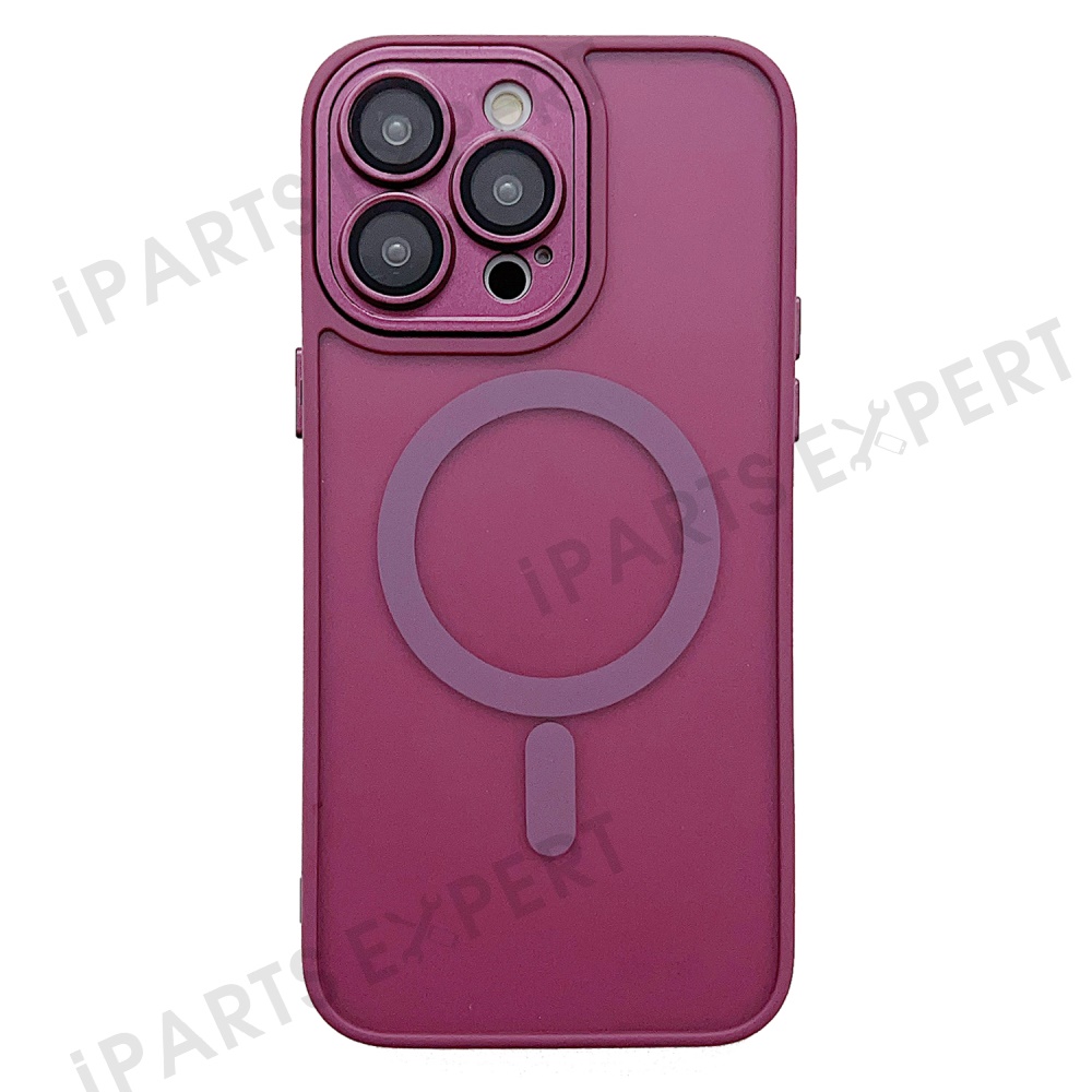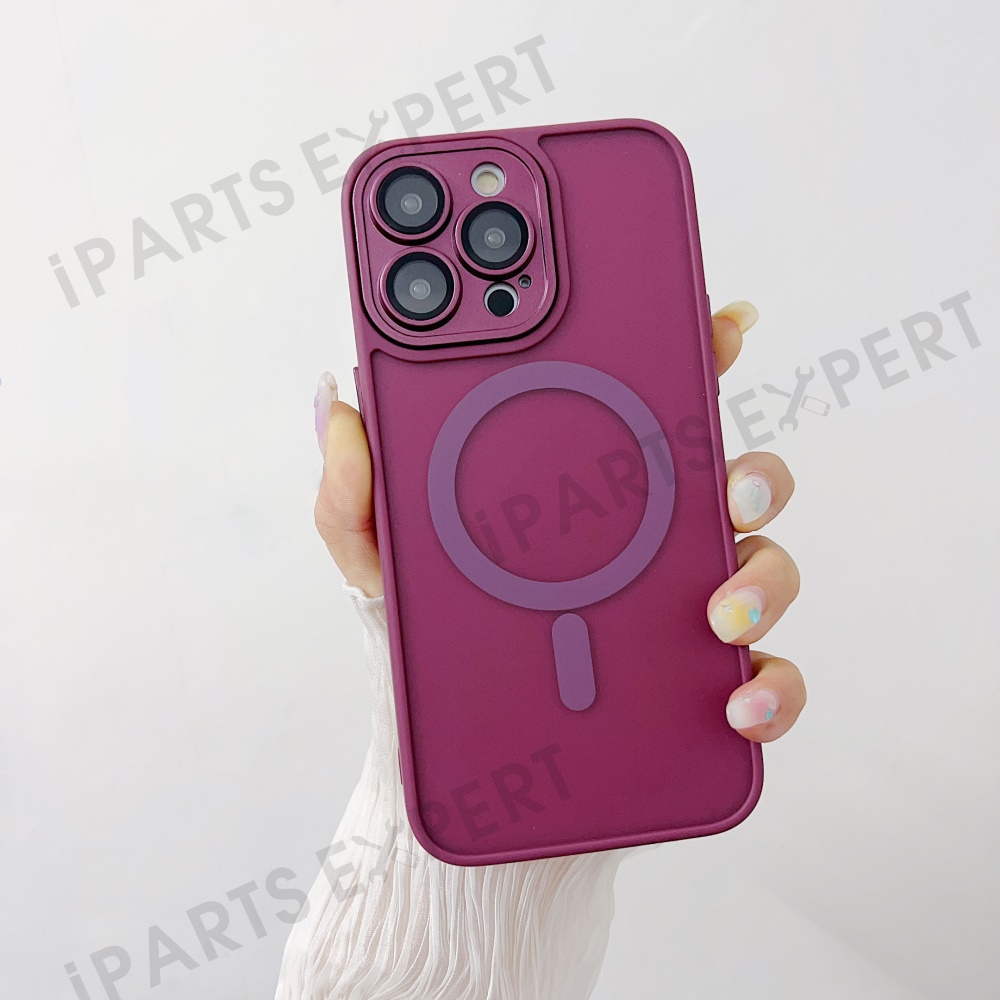 For iPhone 14 Pro Max Magnetic Case with Lens Film / Detachable Lens Frame Hybrid Phone Back Cover - Wine Red