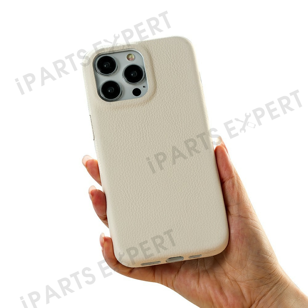 For iPhone 14 Pro Max Phone Case Skin Touch Litchi Texture Leather Coated PET Mobile Cover - Beige