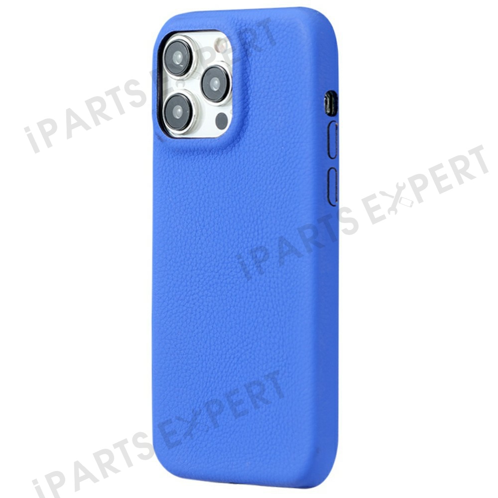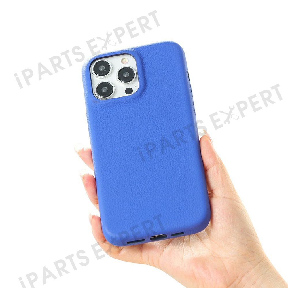 For iPhone 14 Pro Max Phone Case Skin Touch Litchi Texture Leather Coated PET Mobile Cover - Blue