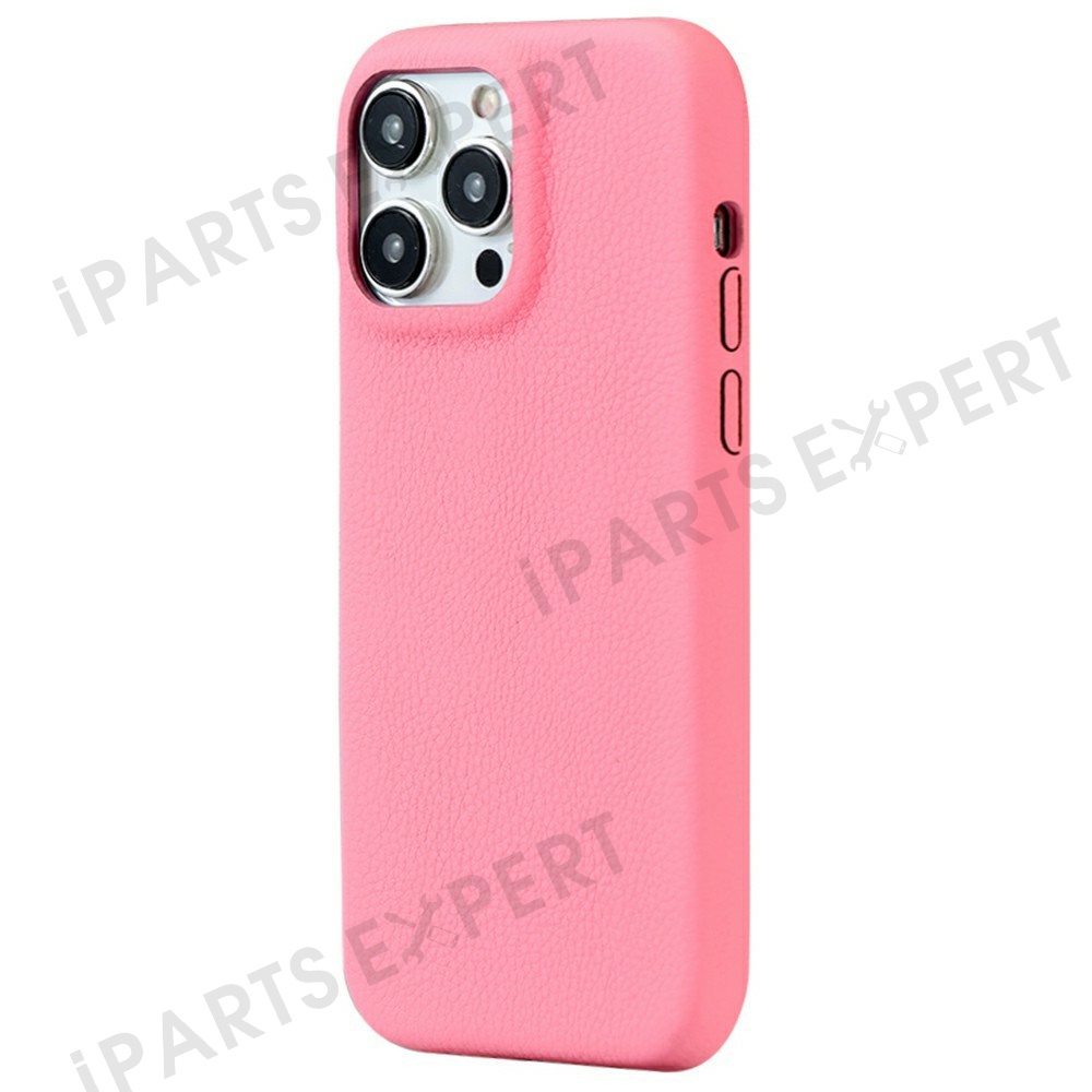 For iPhone 14 Pro Max Phone Case Skin Touch Litchi Texture Leather Coated PET Mobile Cover - Deep Pink
