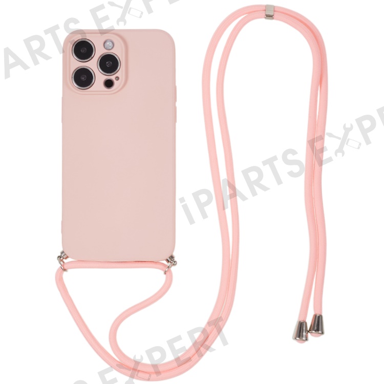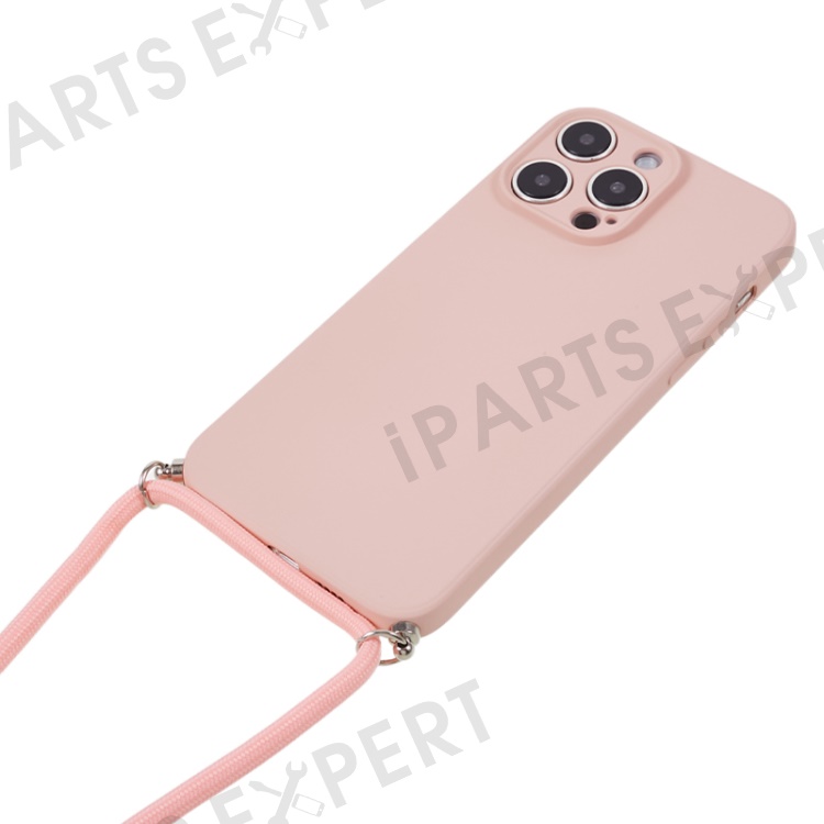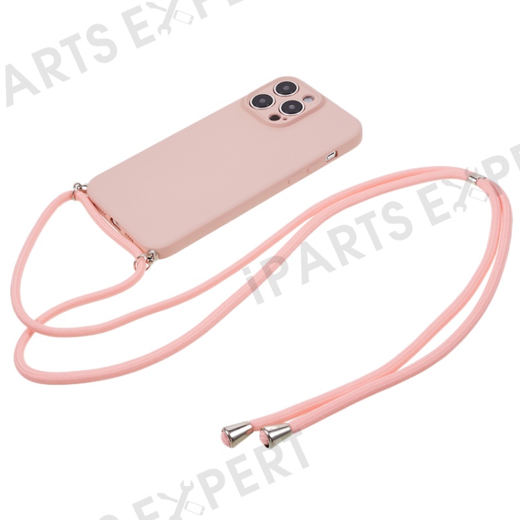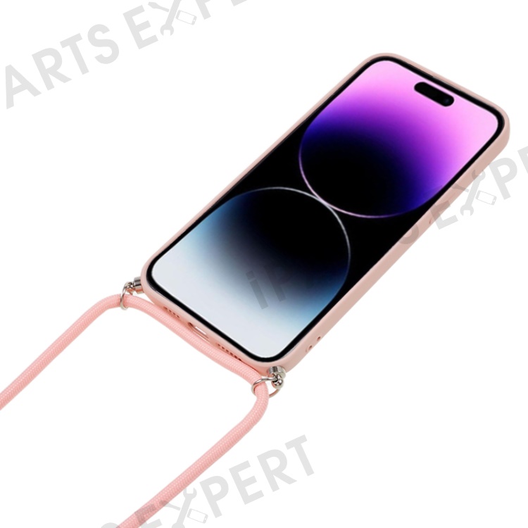 For iPhone 14 Pro Max Case Rubberized TPU Fiber Lining Phone Cover with Long Lanyard - Pink