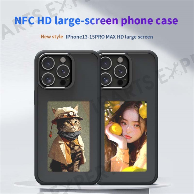 For iPhone 14 Pro Max Smart E-Ink Phone Case 4 Color HD 4 inch Display NFC DIY Customized Screen - Black