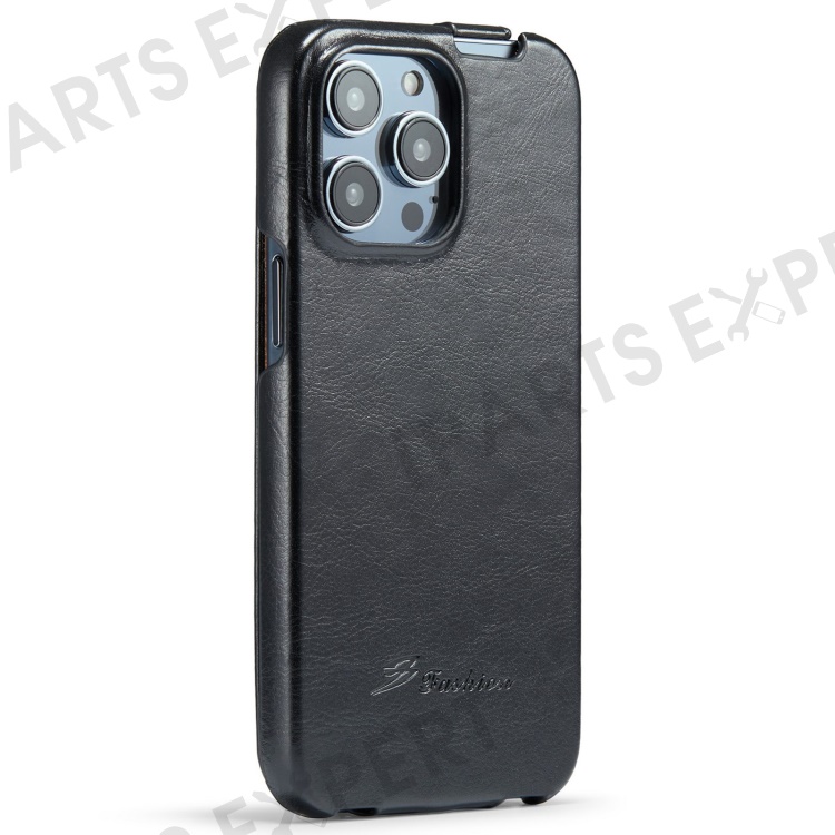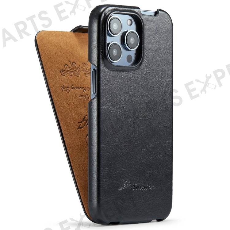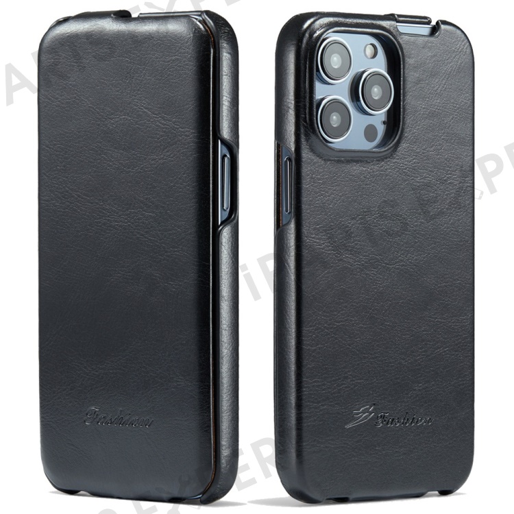 For iPhone 14 Pro Max Vertical Flip PU Leather Phone Case Imprinted Pattern Crazy Horse Texture Shockproof Protective Cover - Black