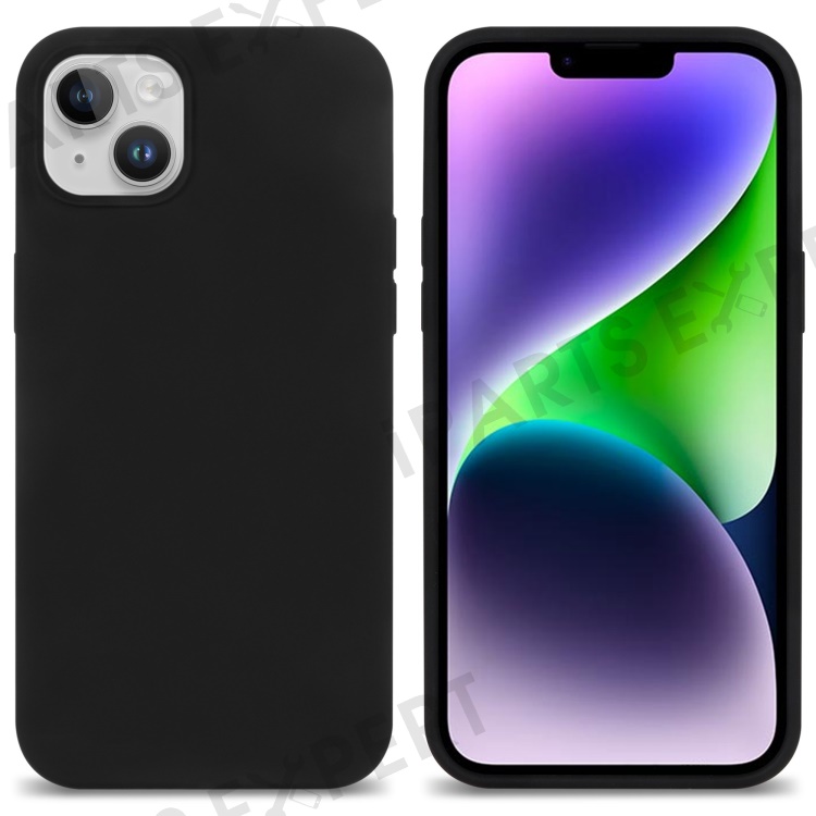 For iPhone 14 Solid Silicone Phone Case Soft Fiber Lining Anti-Scratch Shockproof Back Cover - Black