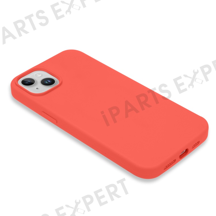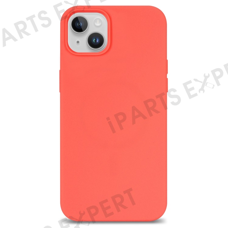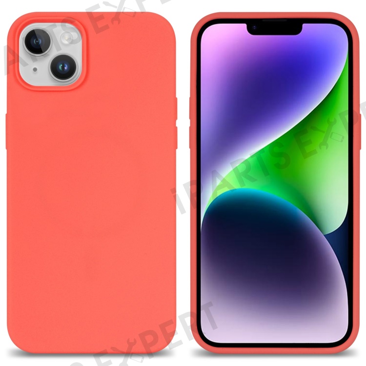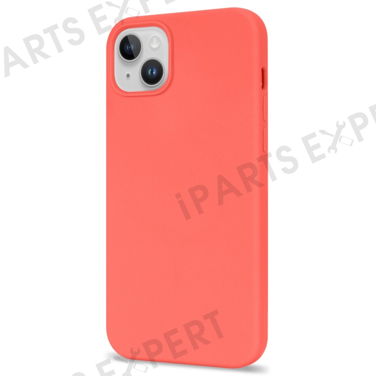 For iPhone 14 Solid Silicone Phone Case Soft Fiber Lining Anti-Scratch Shockproof Back Cover - Orange Pink