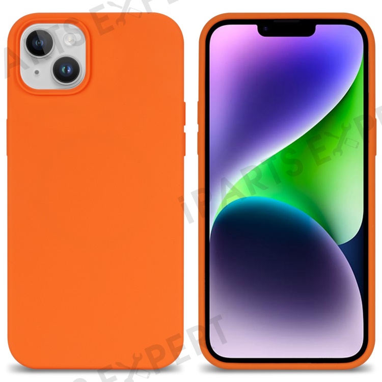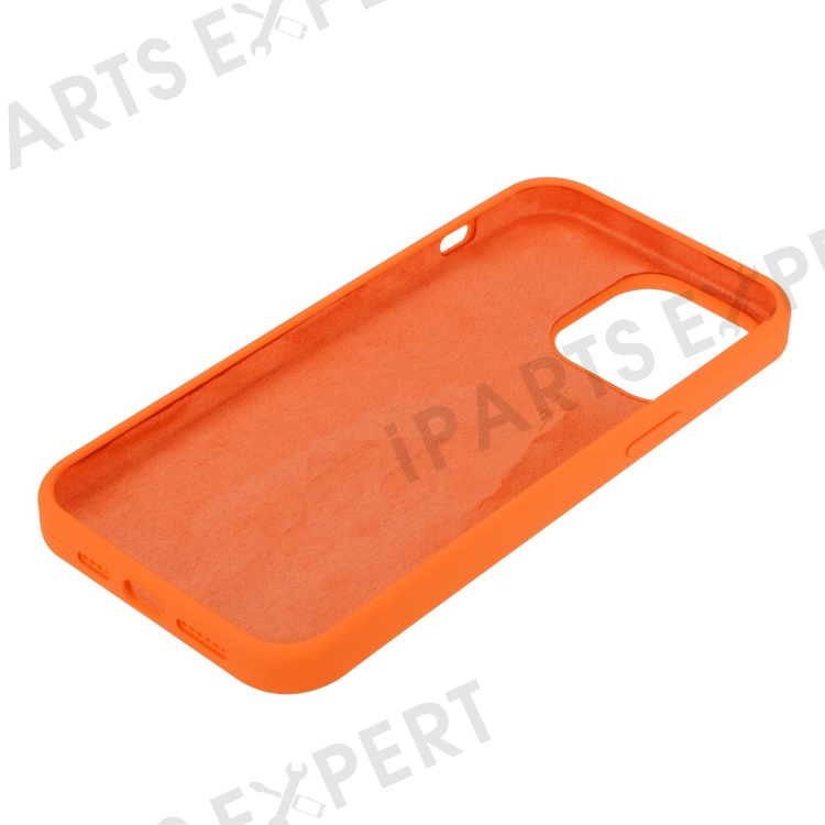 For iPhone 14 Solid Silicone Phone Case Soft Fiber Lining Anti-Scratch Shockproof Back Cover - Orange