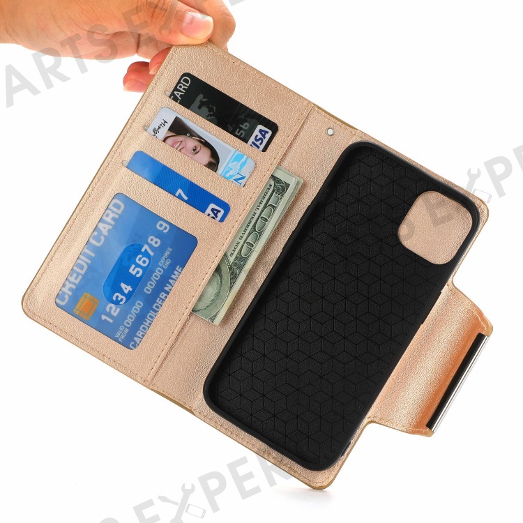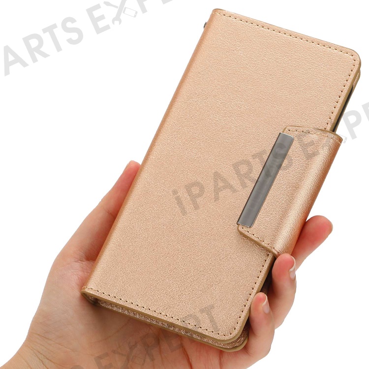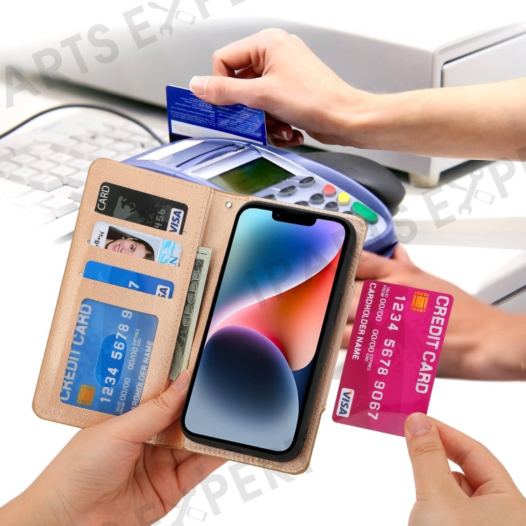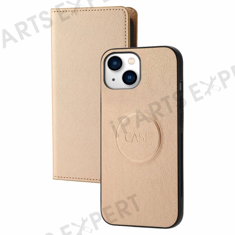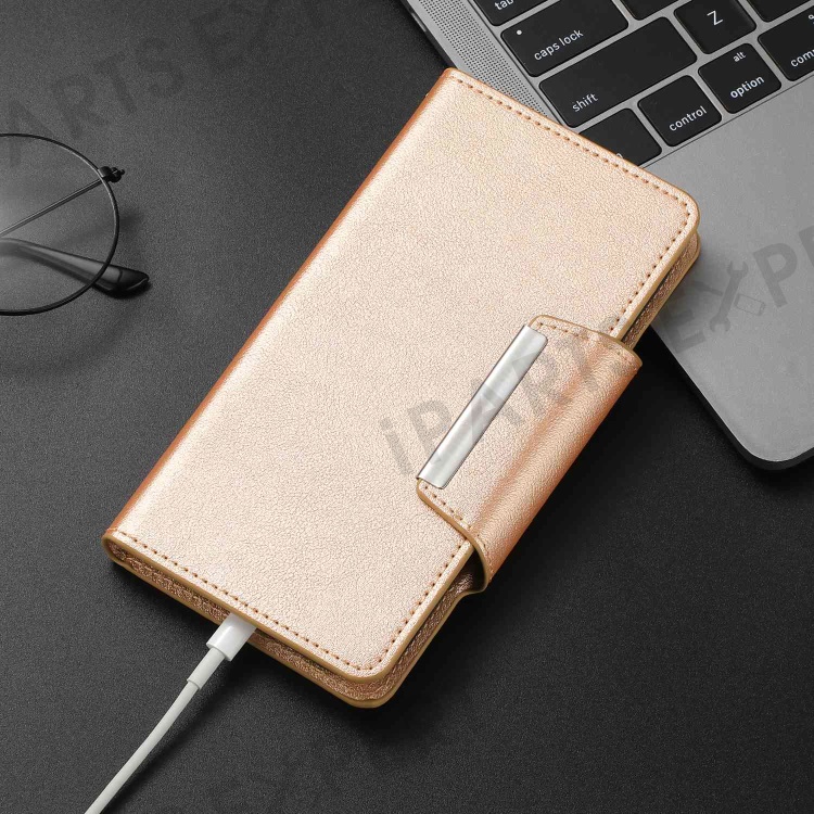 For iPhone 14 Ultra-thin Detachable Drop-proof Magnetic Clasp Leather Wallet Phone Case Shell - Gold