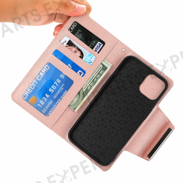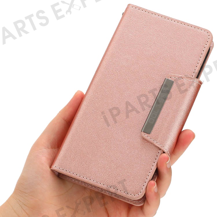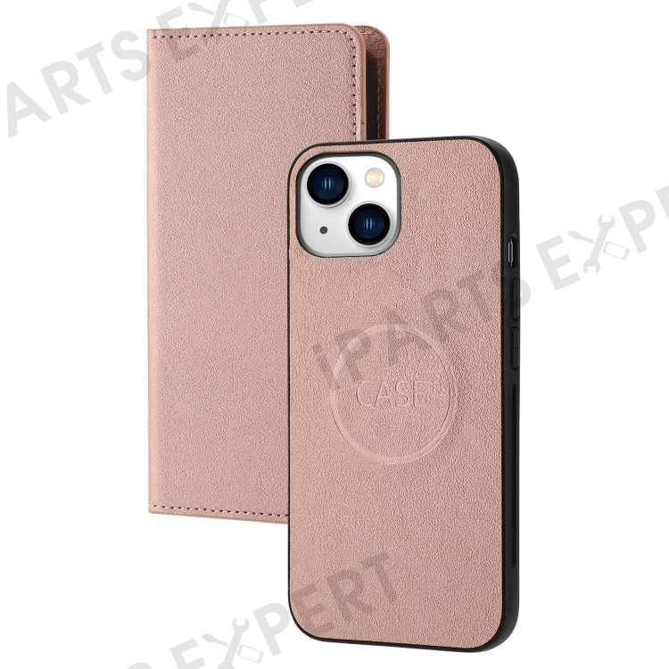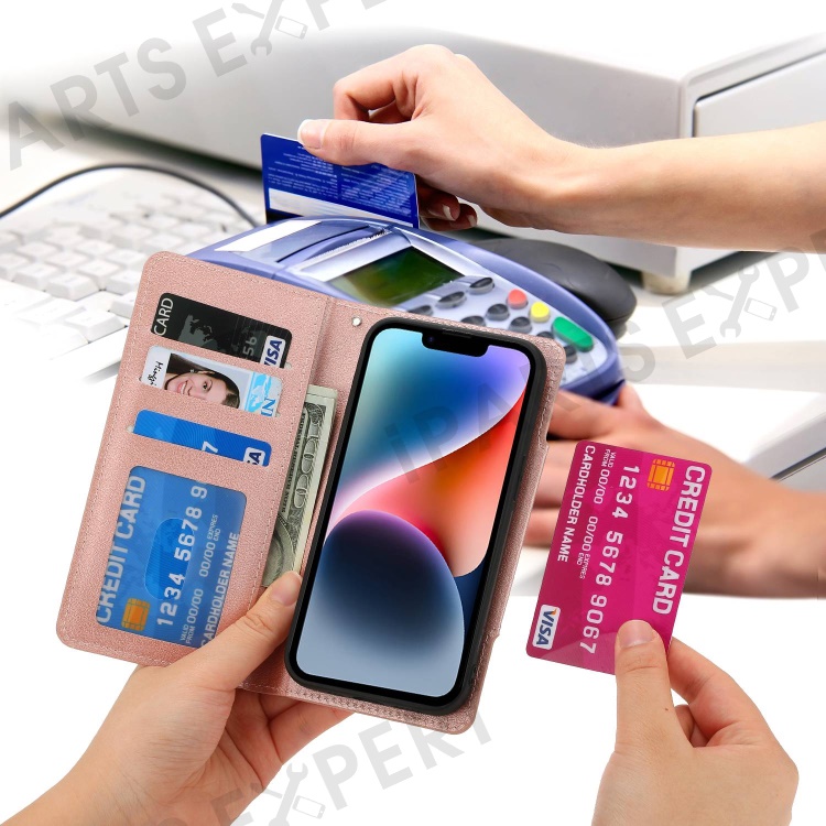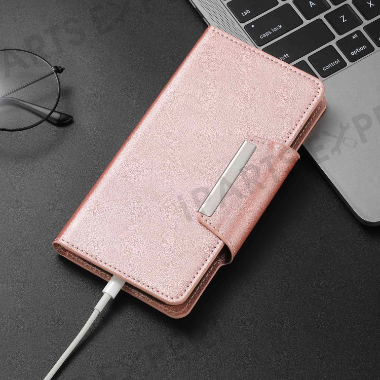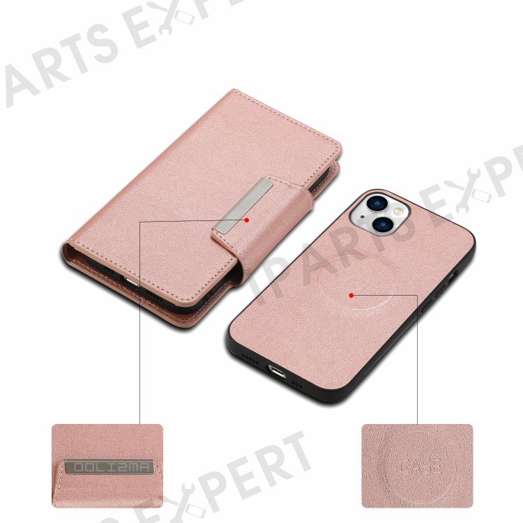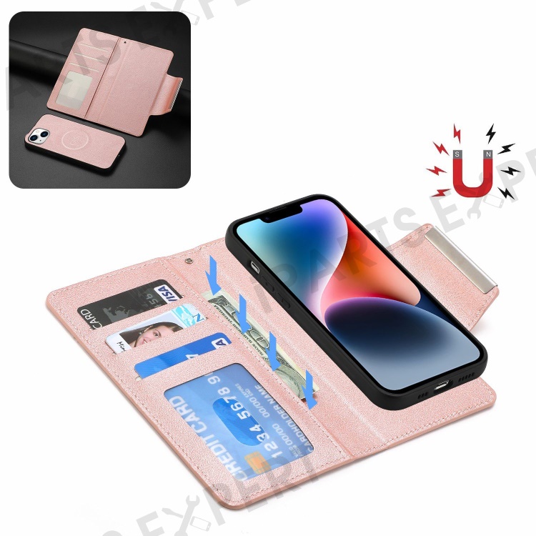 For iPhone 14 Ultra-thin Detachable Drop-proof Magnetic Clasp Leather Wallet Phone Case Shell - Rose Gold