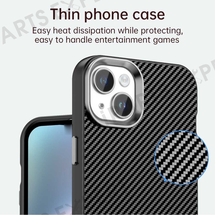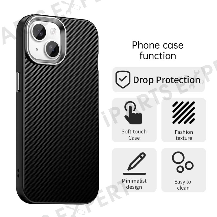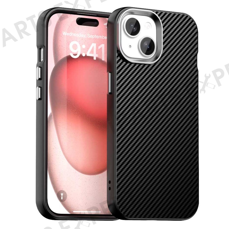 For iPhone 15 Case Cell Phone Hybrid Back Cover Carbon Fiber Texture - Black