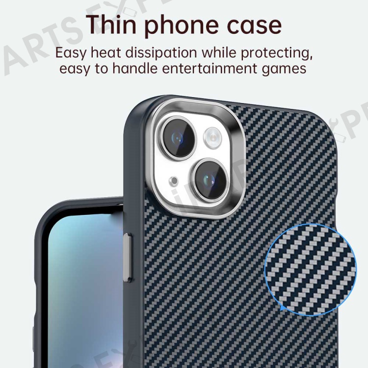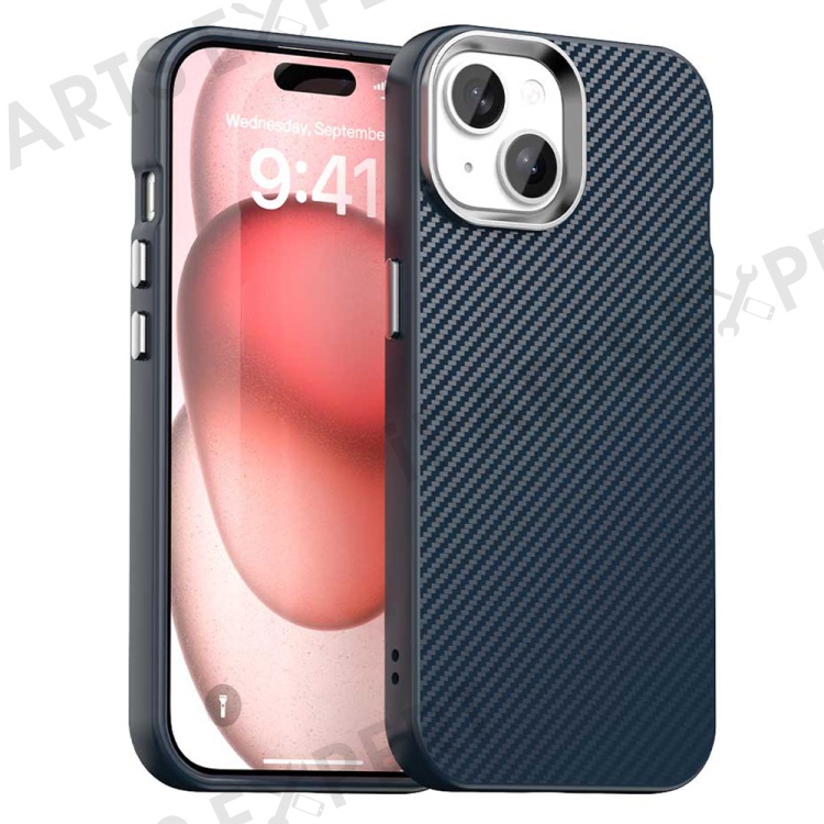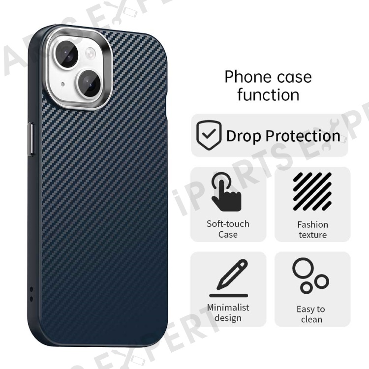 For iPhone 15 Case Cell Phone Hybrid Back Cover Carbon Fiber Texture - Blue