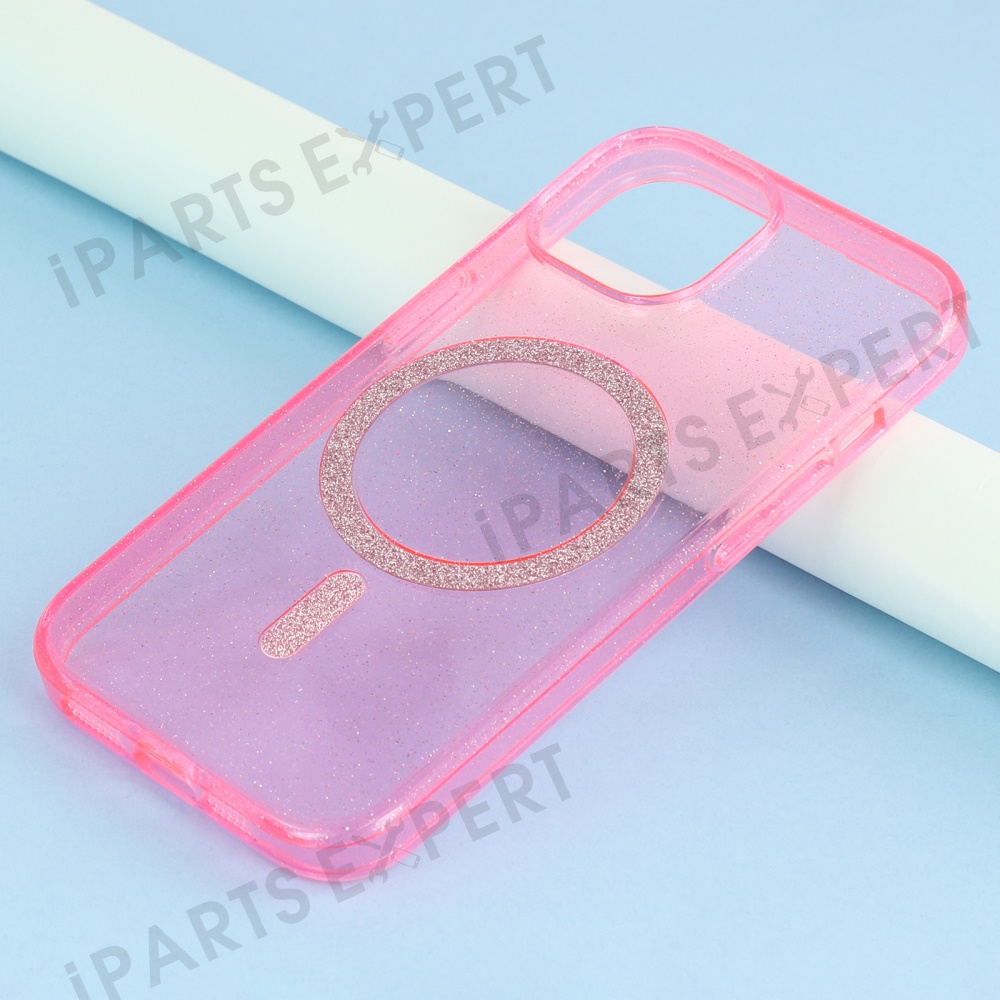 For iPhone 15 Case Compatible with MagSafe 2.0mm PC + TPU Glitter Phone Cover - Pink