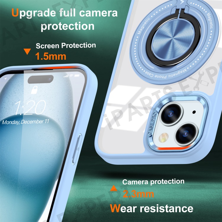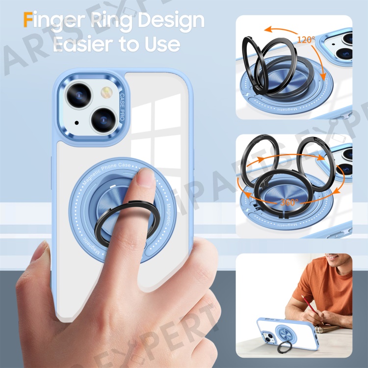 For iPhone 15 Case Compatible with MagSafe PC+TPU Kickstand Transparent Phone Cover - Baby Blue