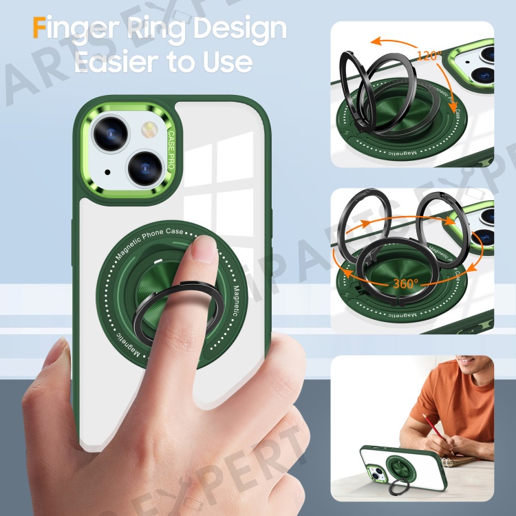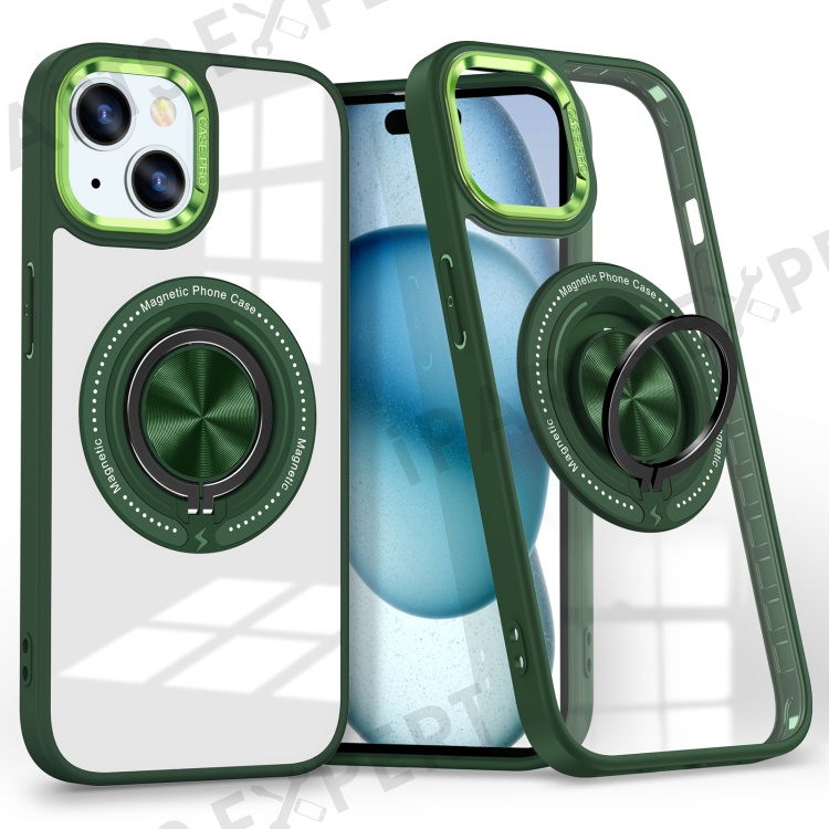 For iPhone 15 Case Compatible with MagSafe PC+TPU Kickstand Transparent Phone Cover - Blackish Green