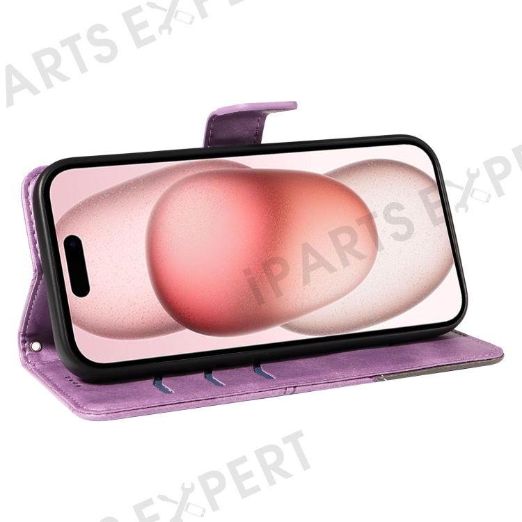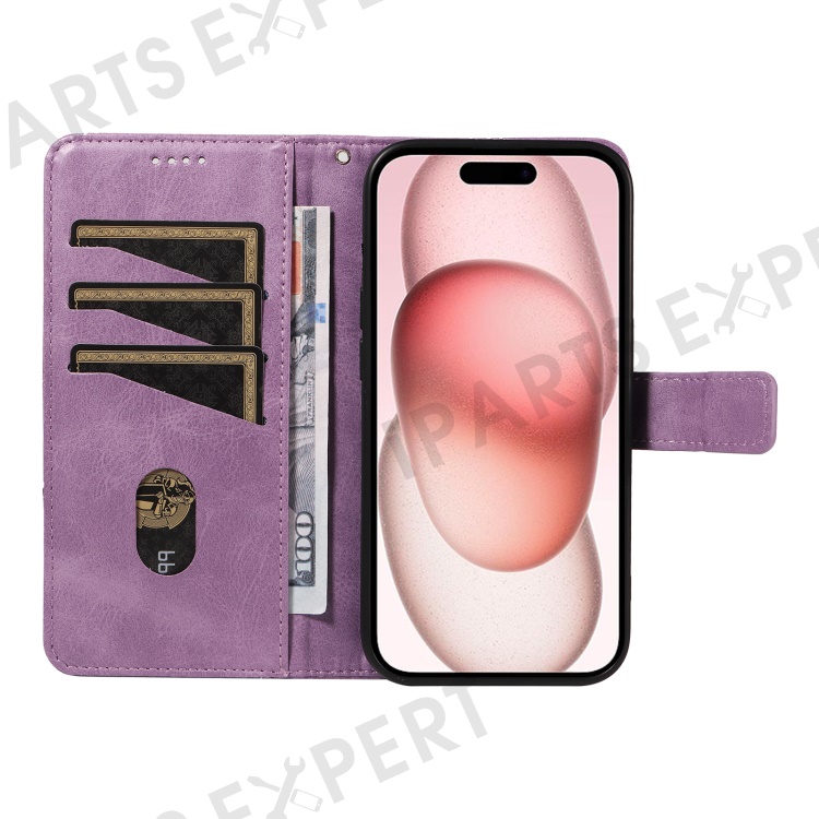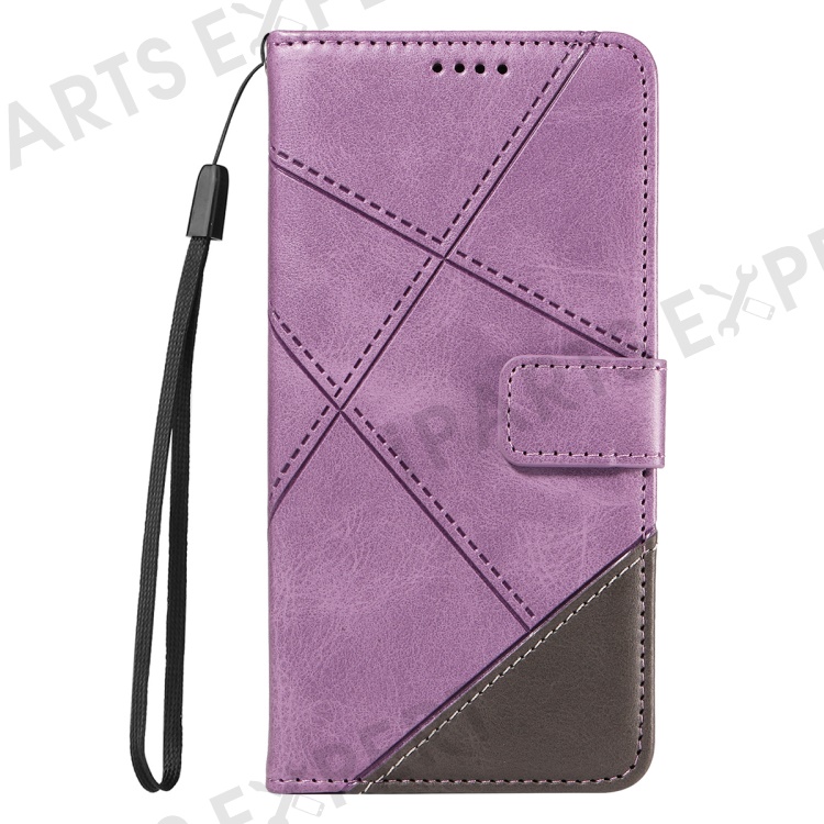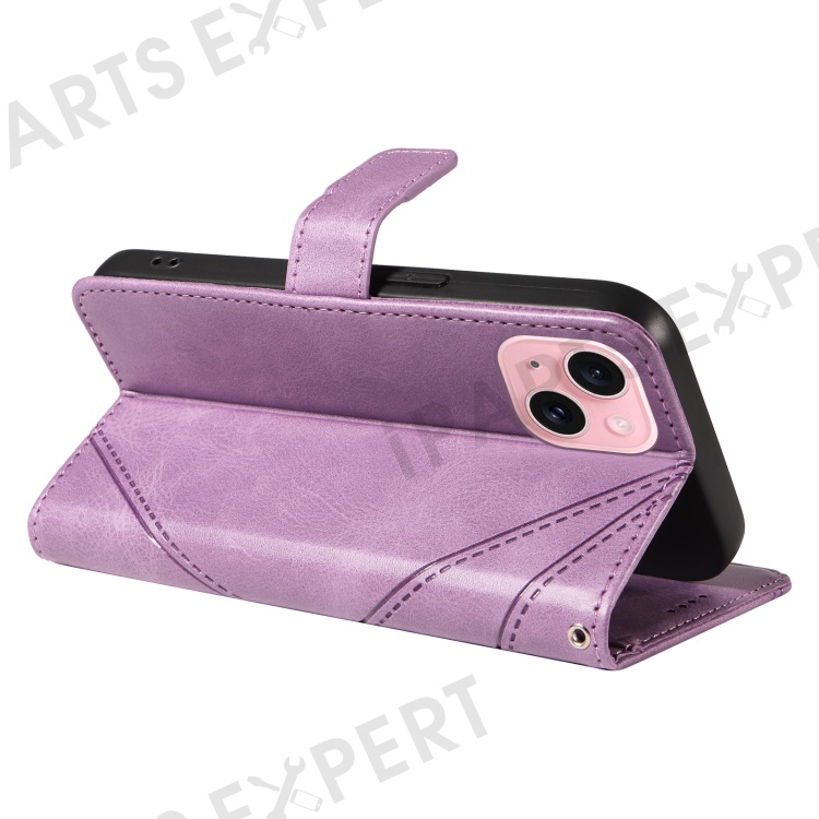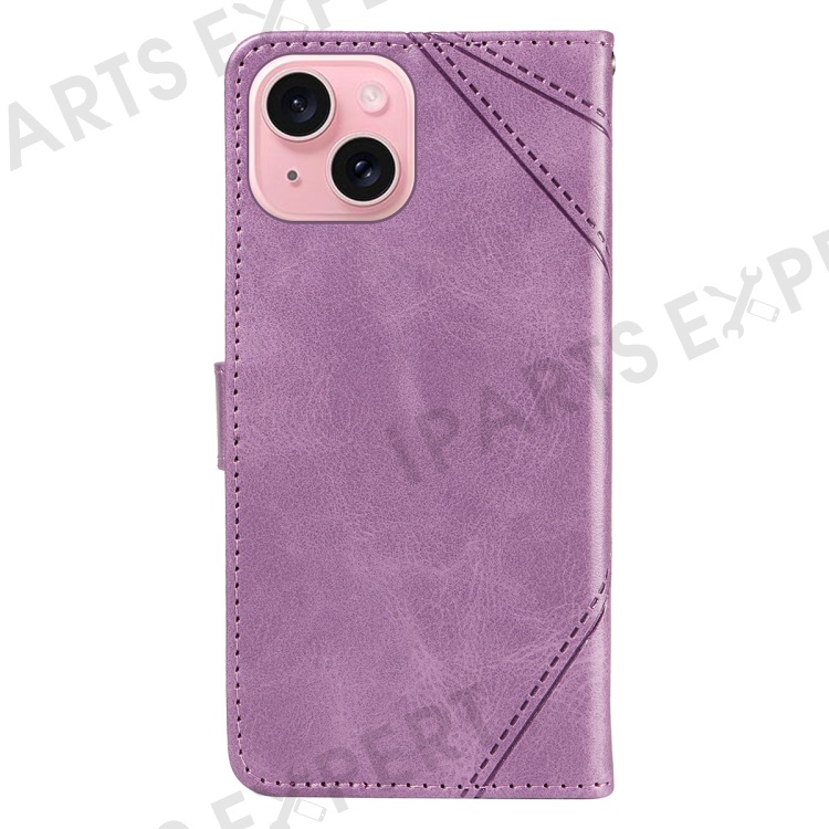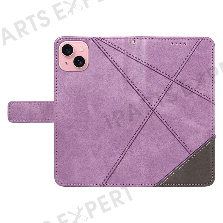 For iPhone 15 Case PU Leather Matte TPU Folio Wallet Phone Cover Geometric Lines - Purple