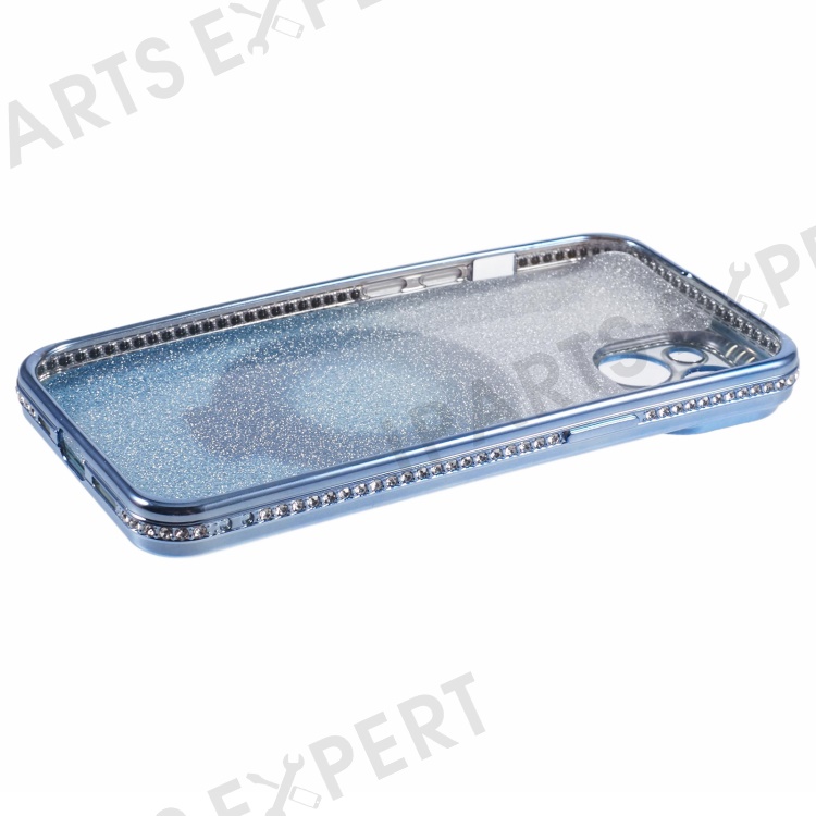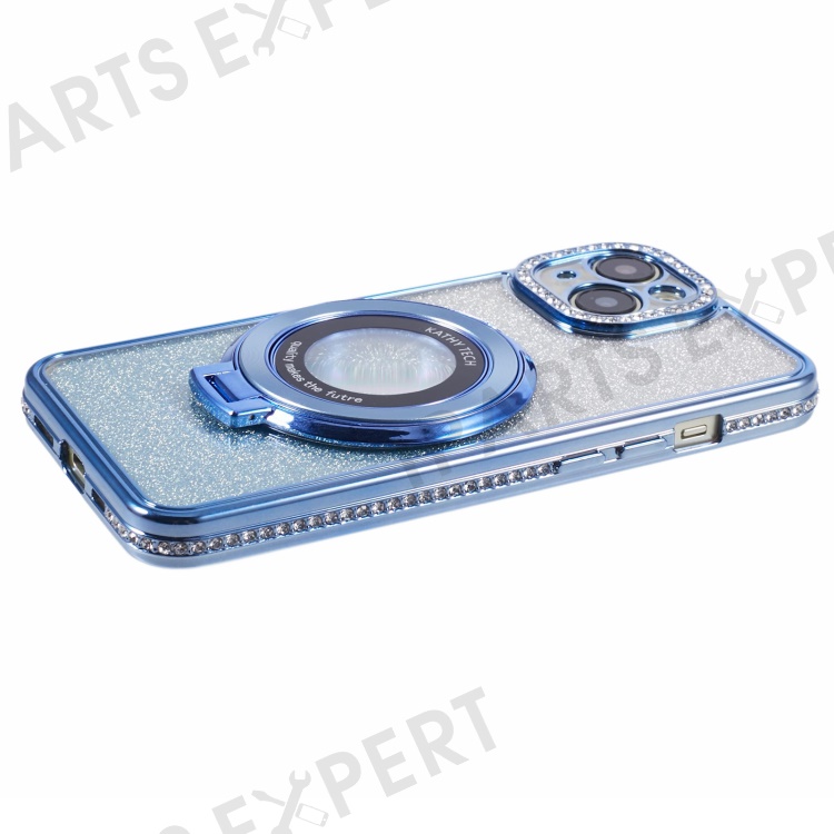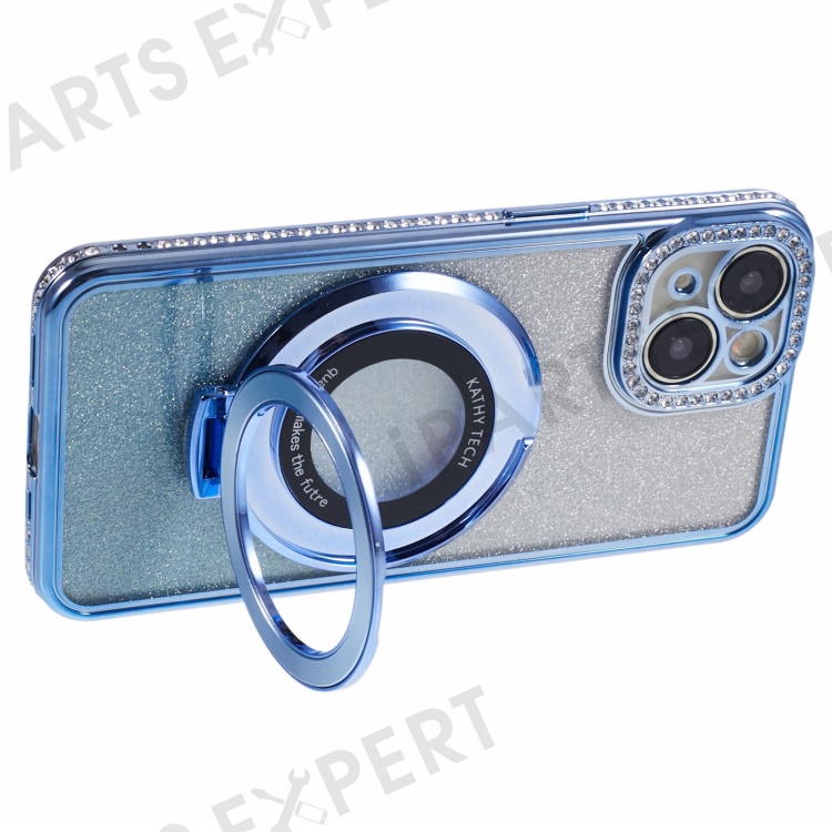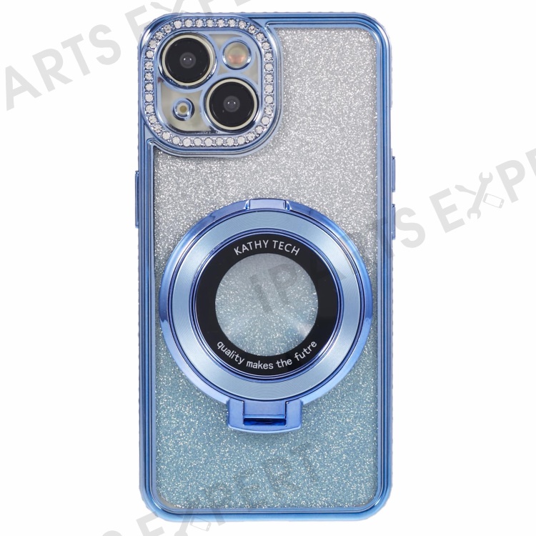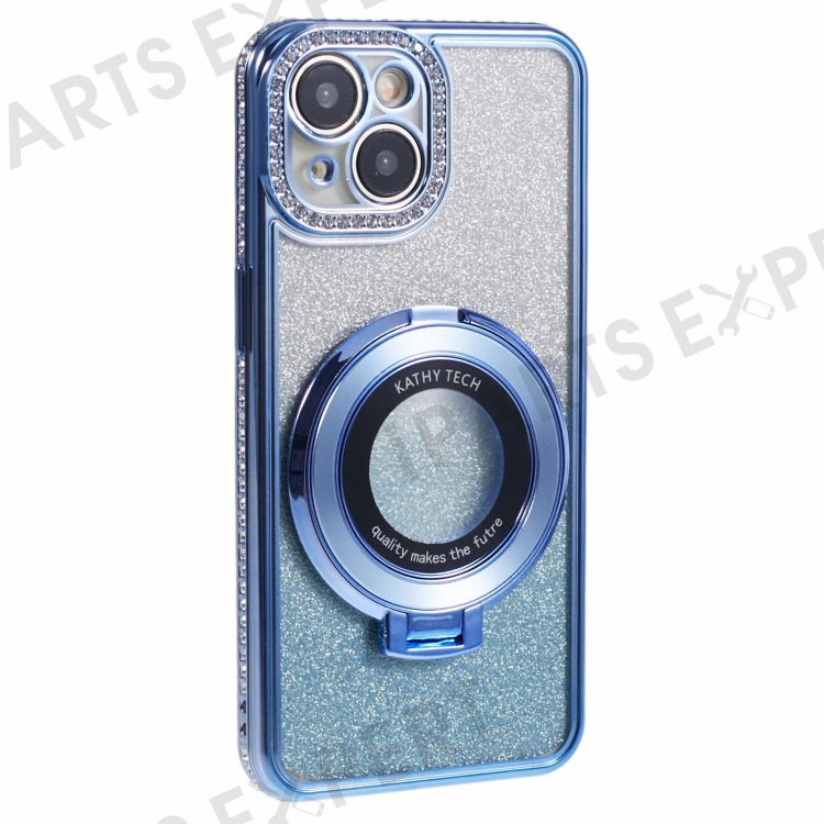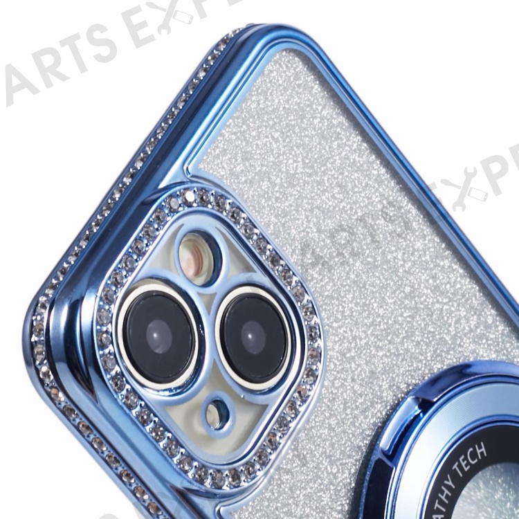 For iPhone 15 Case Ring Kickstand TPU Phone Cover with Rhinestone Decor - Blue